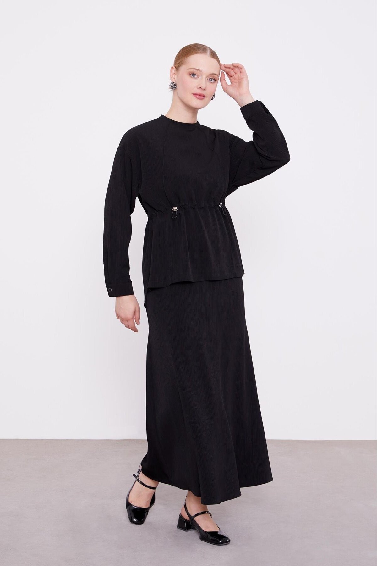 Zümrüt Beli Büzgülü Piliseli Etek Takım Zümrüt Beli Büzgülü Piliseli Etek Takım 100472 44