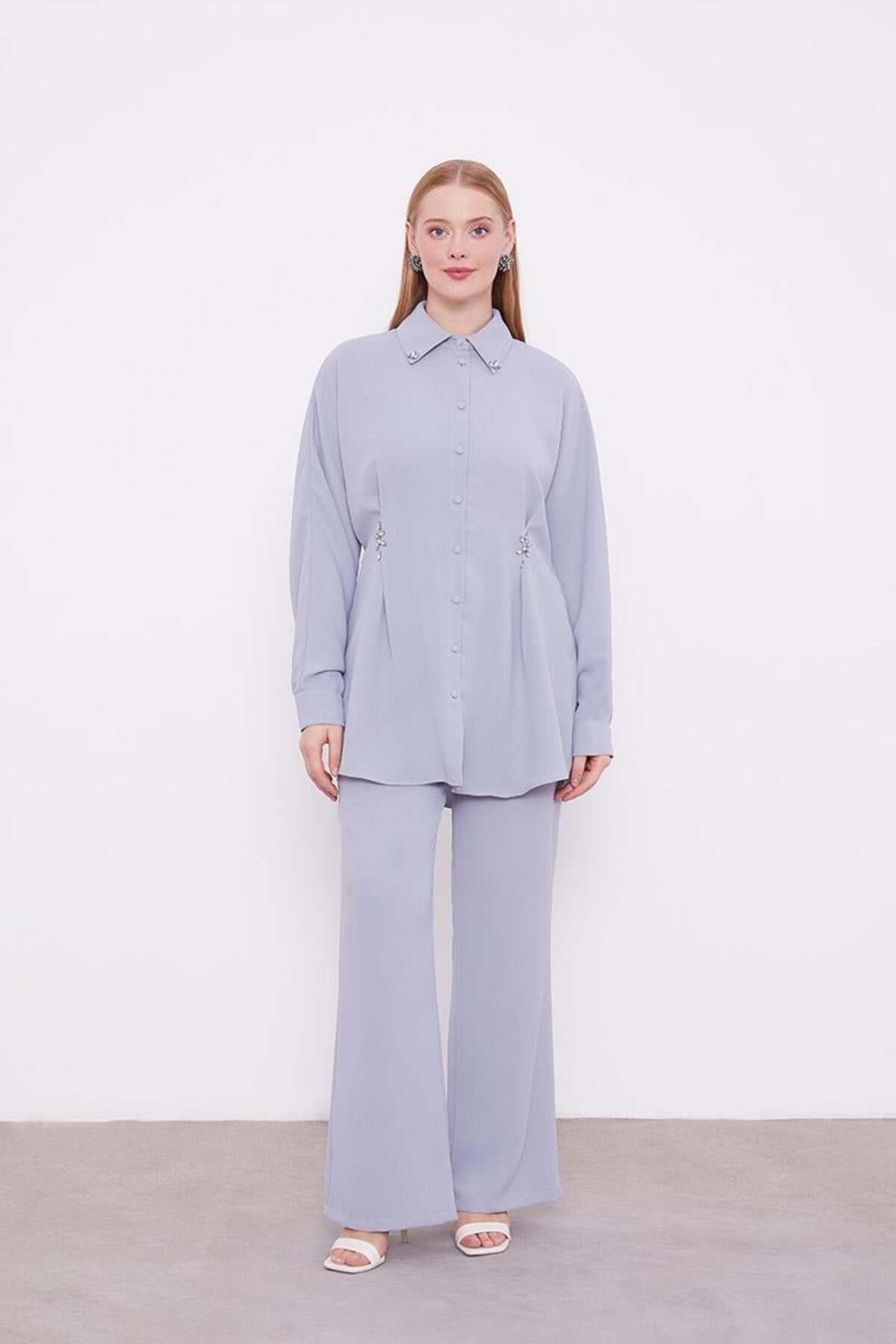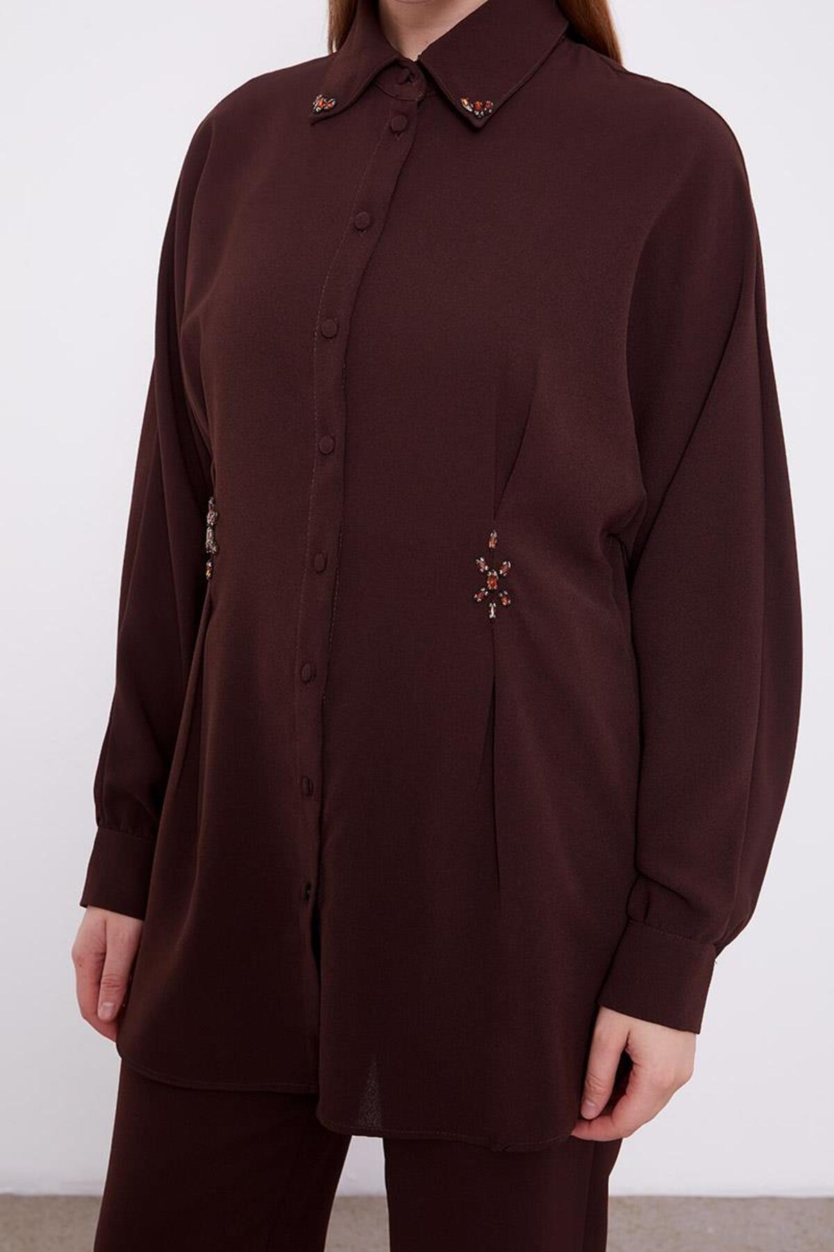 Acı Kahve Taşlı Krepe Detaylı Tunik Takım Acı Kahve Taşlı Krepe Detaylı Tunik Takım 100195 44