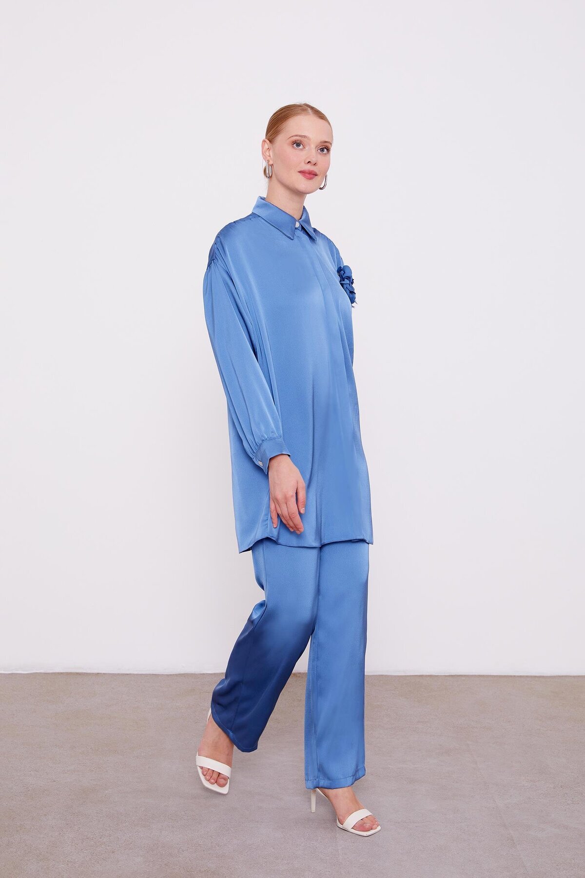 İndigo Gül Broşlu Saten İkili Takım İndigo Gül Broşlu Saten İkili Takım TYCE0374397062CC01 44
