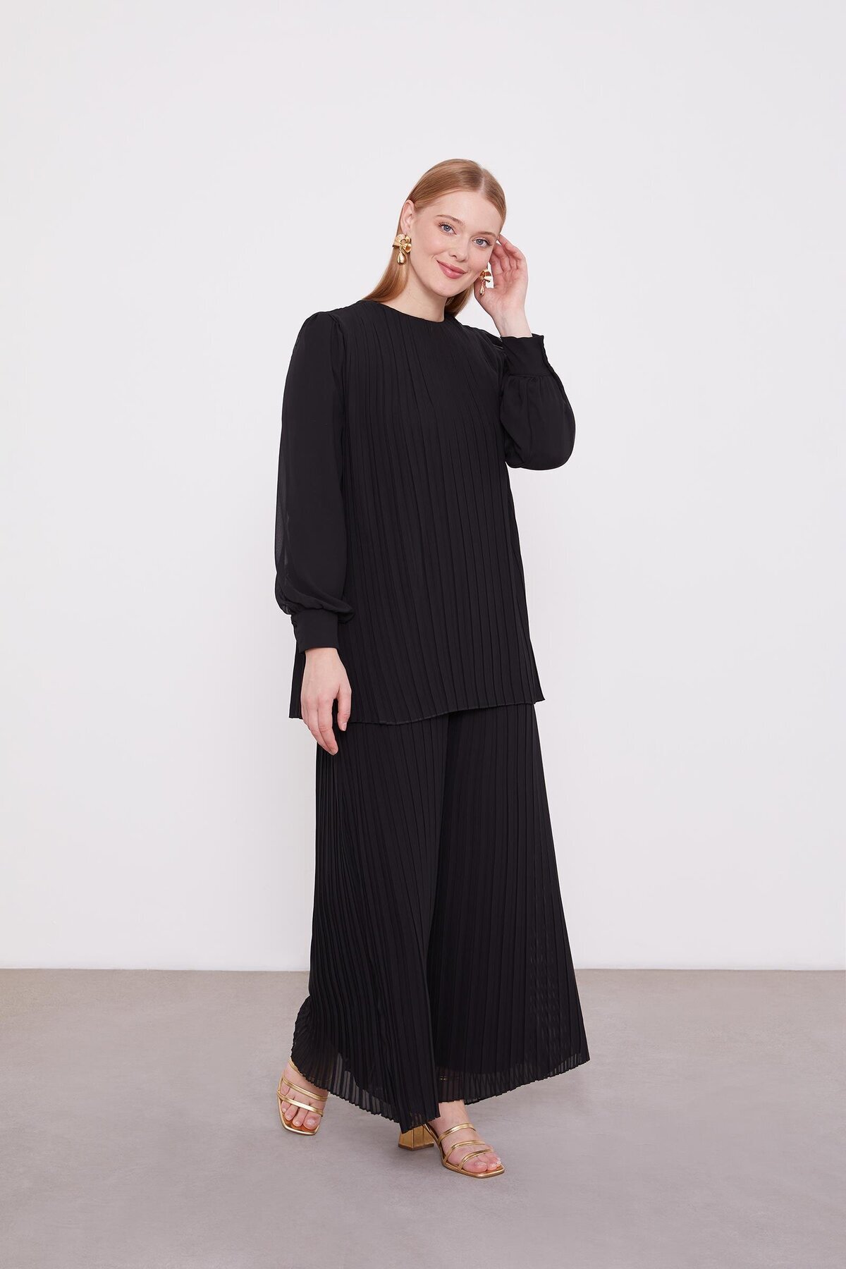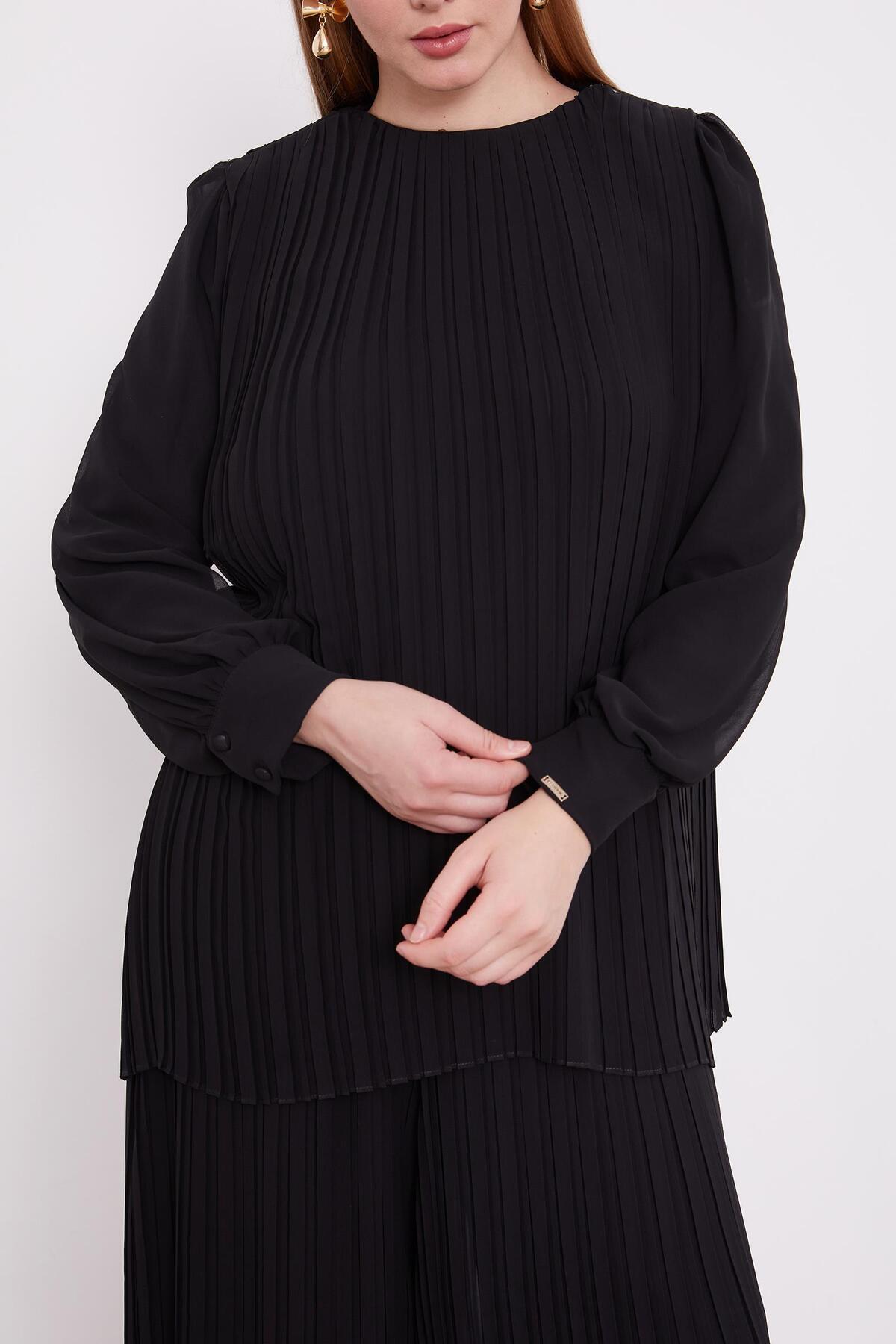 Siyah Piliseli Şifon İkili Takım Siyah Piliseli Şifon İkili Takım 100051 46