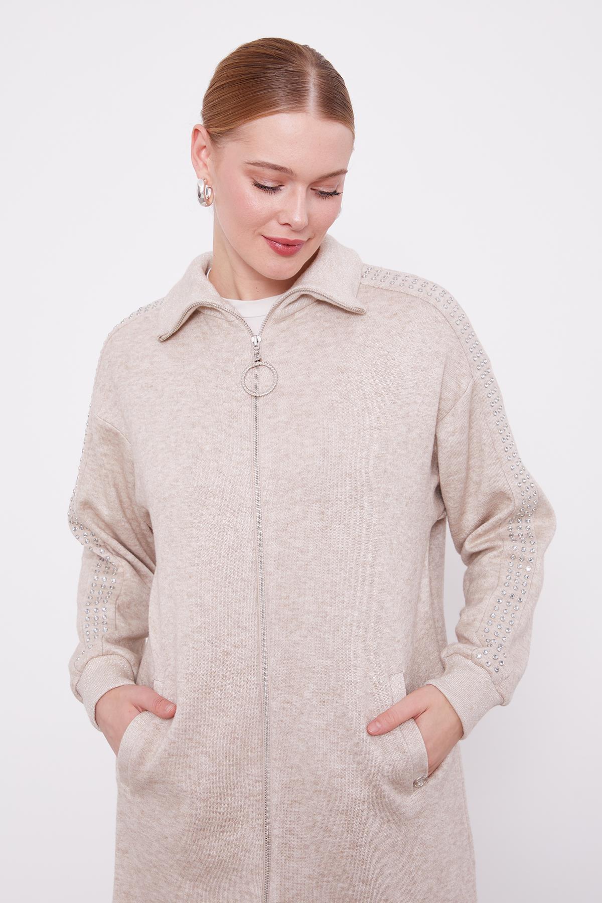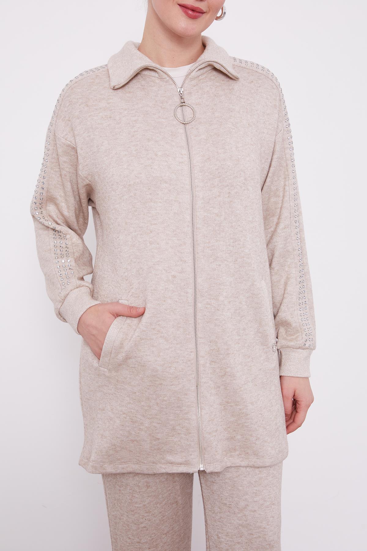 Bej Kolları Taş İşlemeli Kaşmir İkili Takım Bej Kolları Taş İşlemeli Kaşmir İkili Takım 100567 44