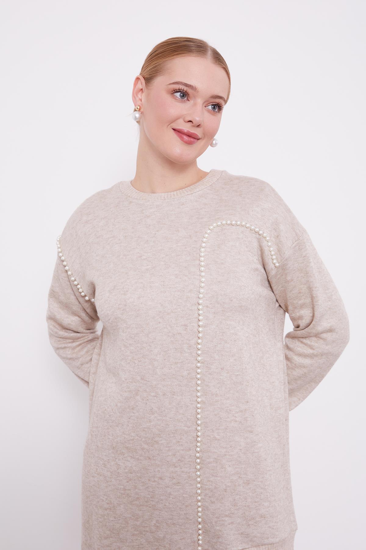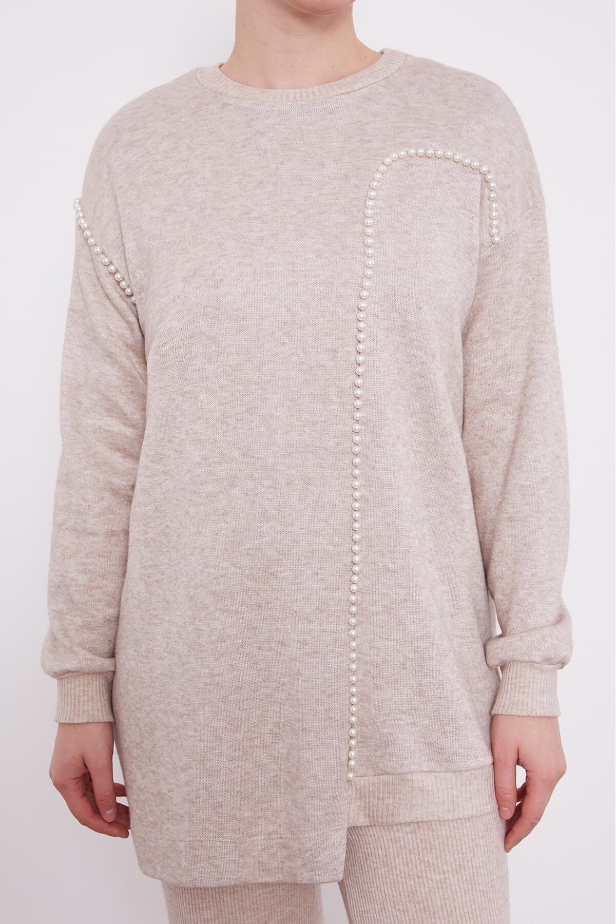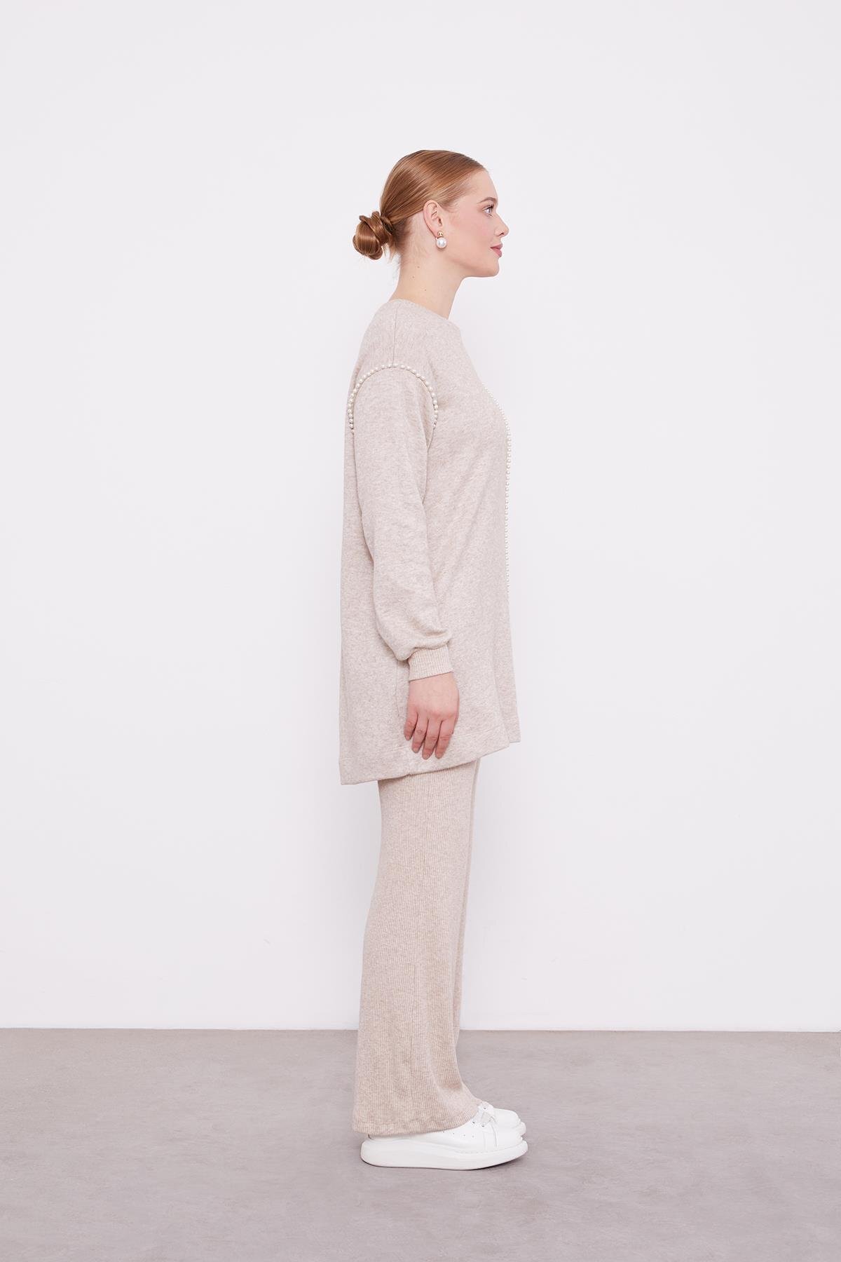 Bej Şerit İncili Kaşmir İkili Takım Bej Şerit İncili Kaşmir İkili Takım 100592 44
