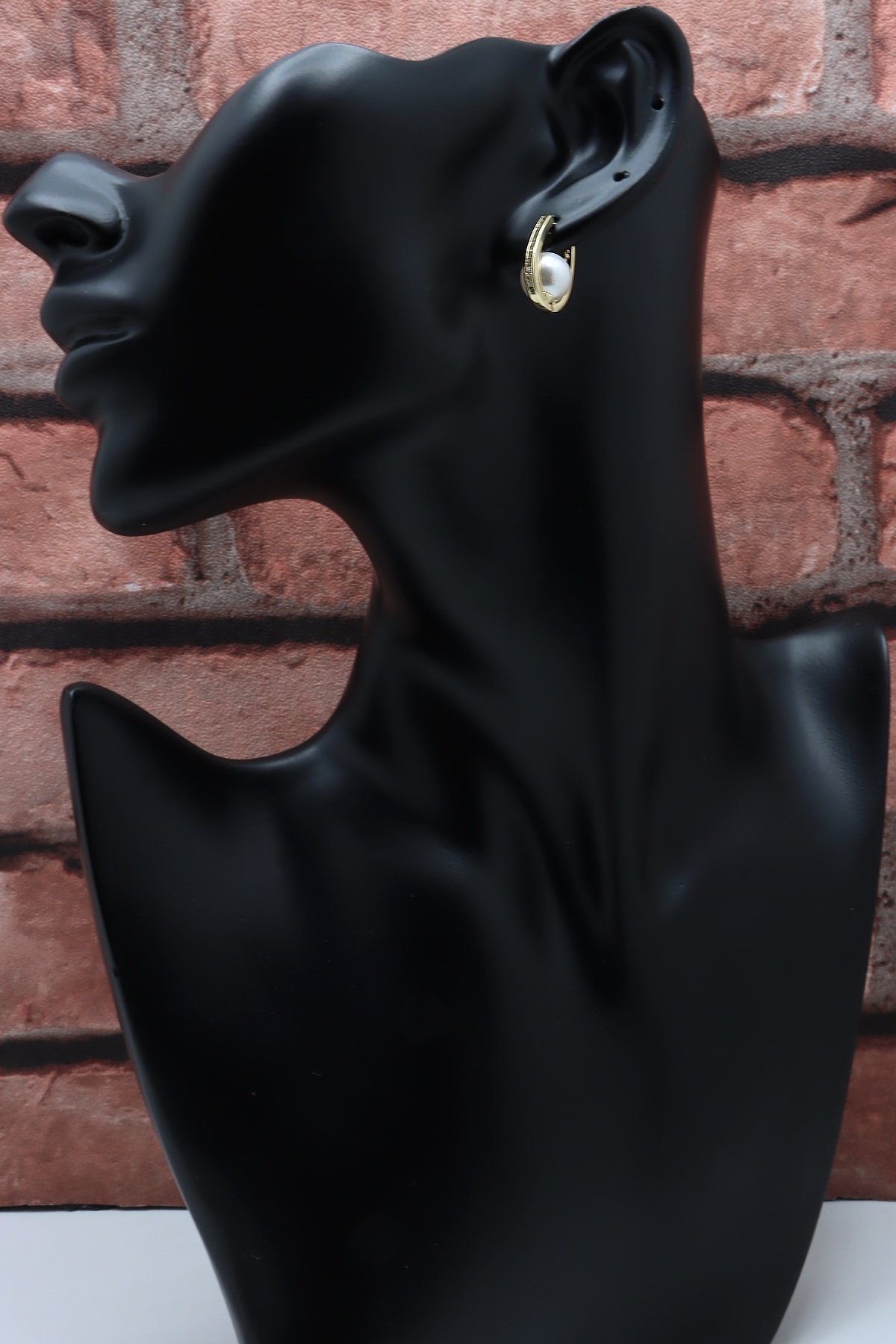 İncili Zirkon Taşlı Altın Renk Küpe İncili Zirkon Taşlı Altın Renk Küpe EP677 تک سایز