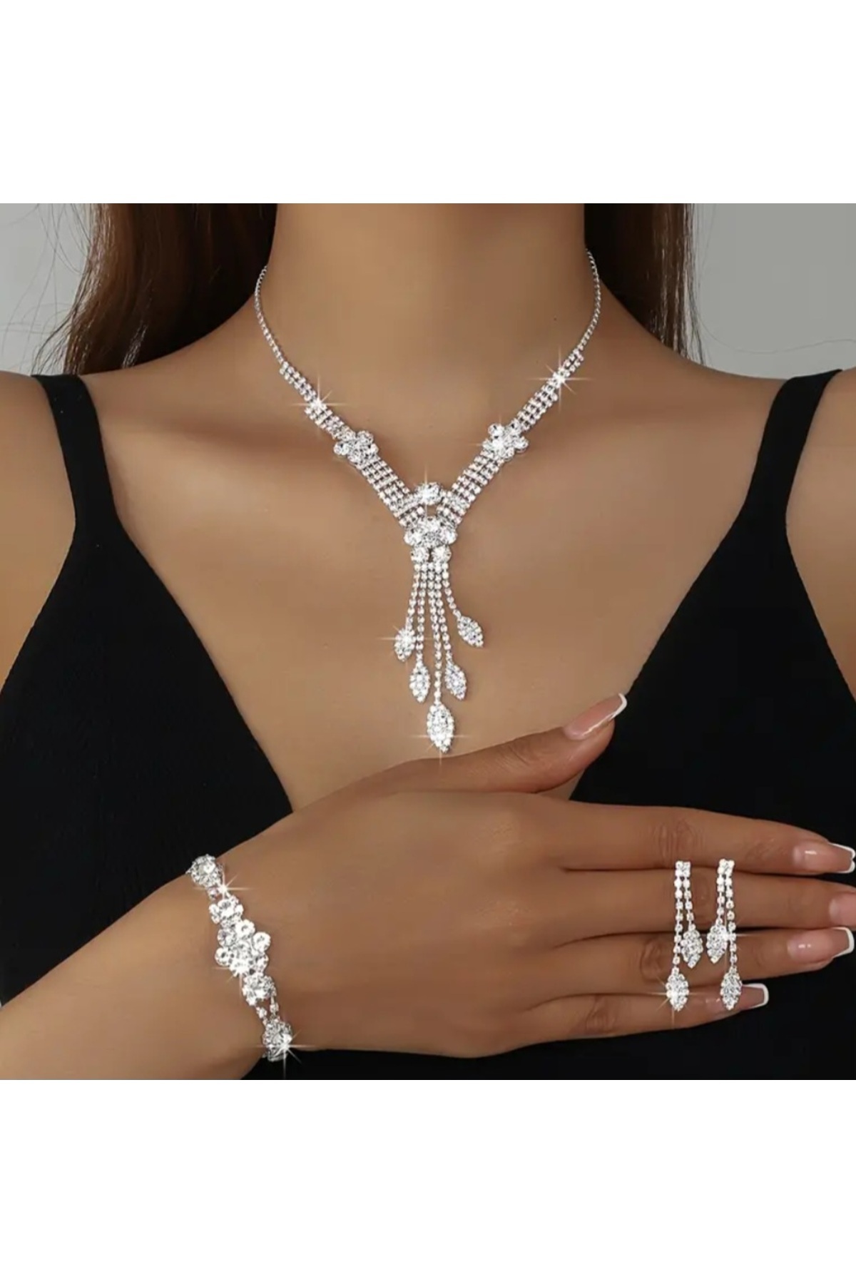 1 Küpe , 1 Kolye ,Şık Takı Seti Gümüş Kaplama Taşlı davet Abiye Takı Düğün Özel Gece 1 Küpe , 1 Kolye ,Şık Takı Seti Gümüş Kaplama Taşlı davet Abiye Takı Düğün Özel Gece tbrjsjddn U