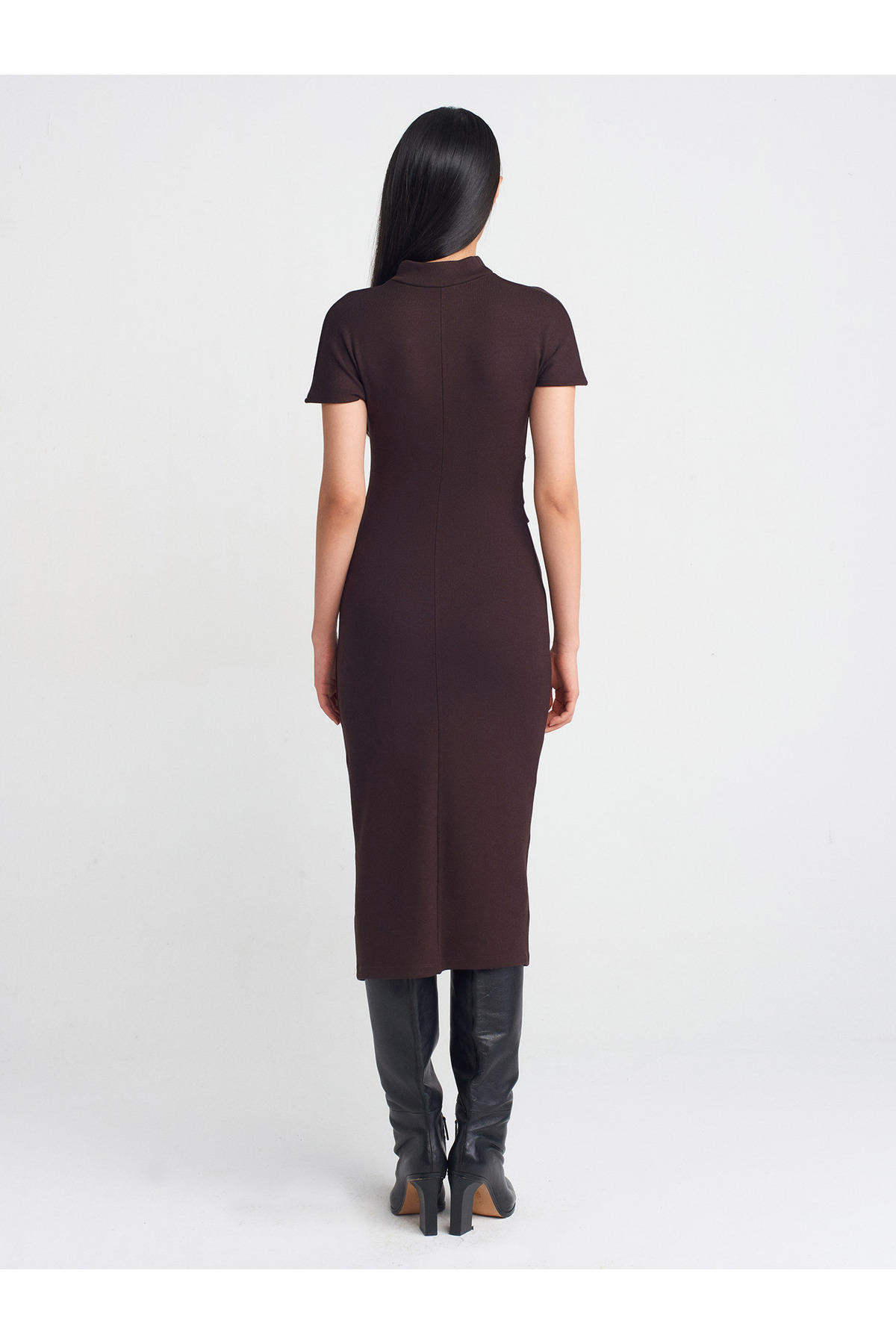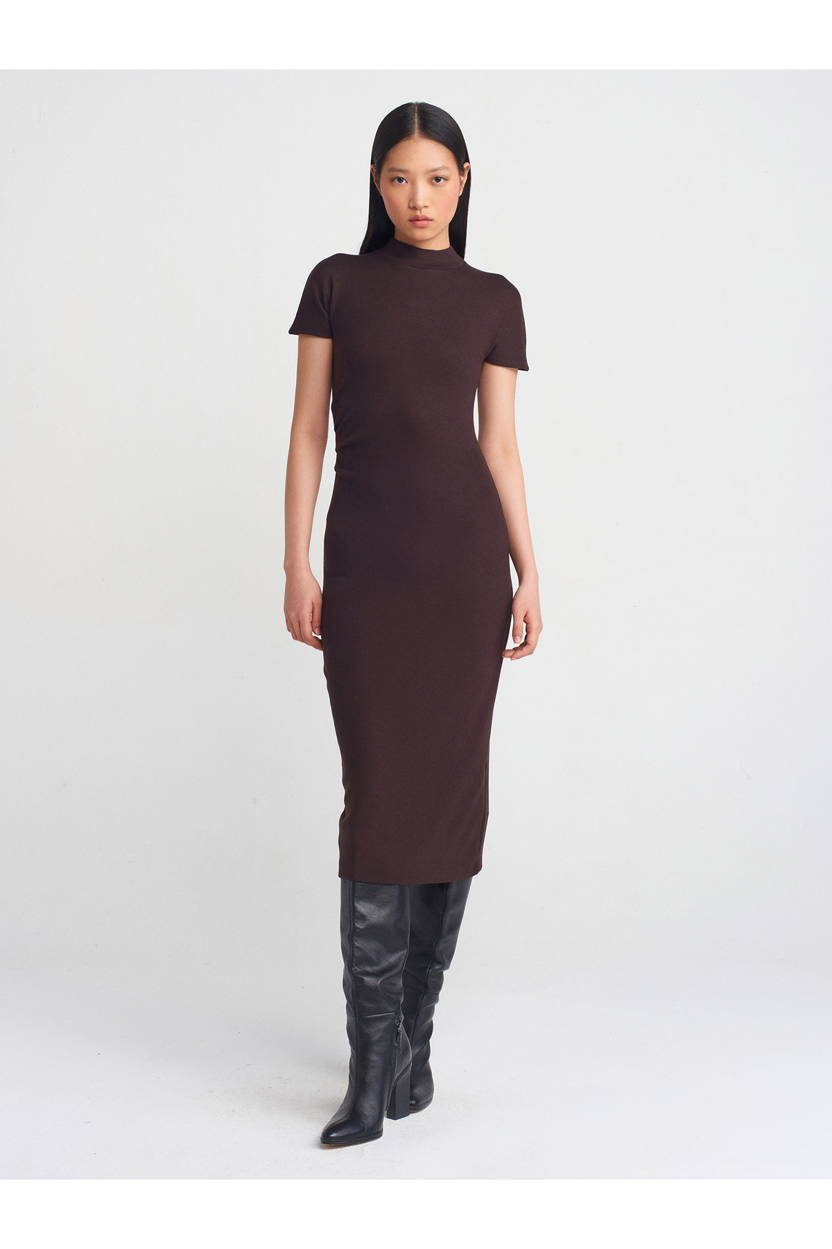 91297 Streç Örme Midi Elbise-Koyu Kahve 91297 Streç Örme Midi Elbise-Koyu Kahve 101A91297 40