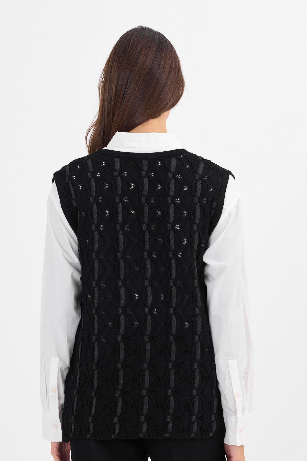 Kadın Siyah Simli Yan Yelek Kadın Siyah Simli Yan Yelek 30025 2XL