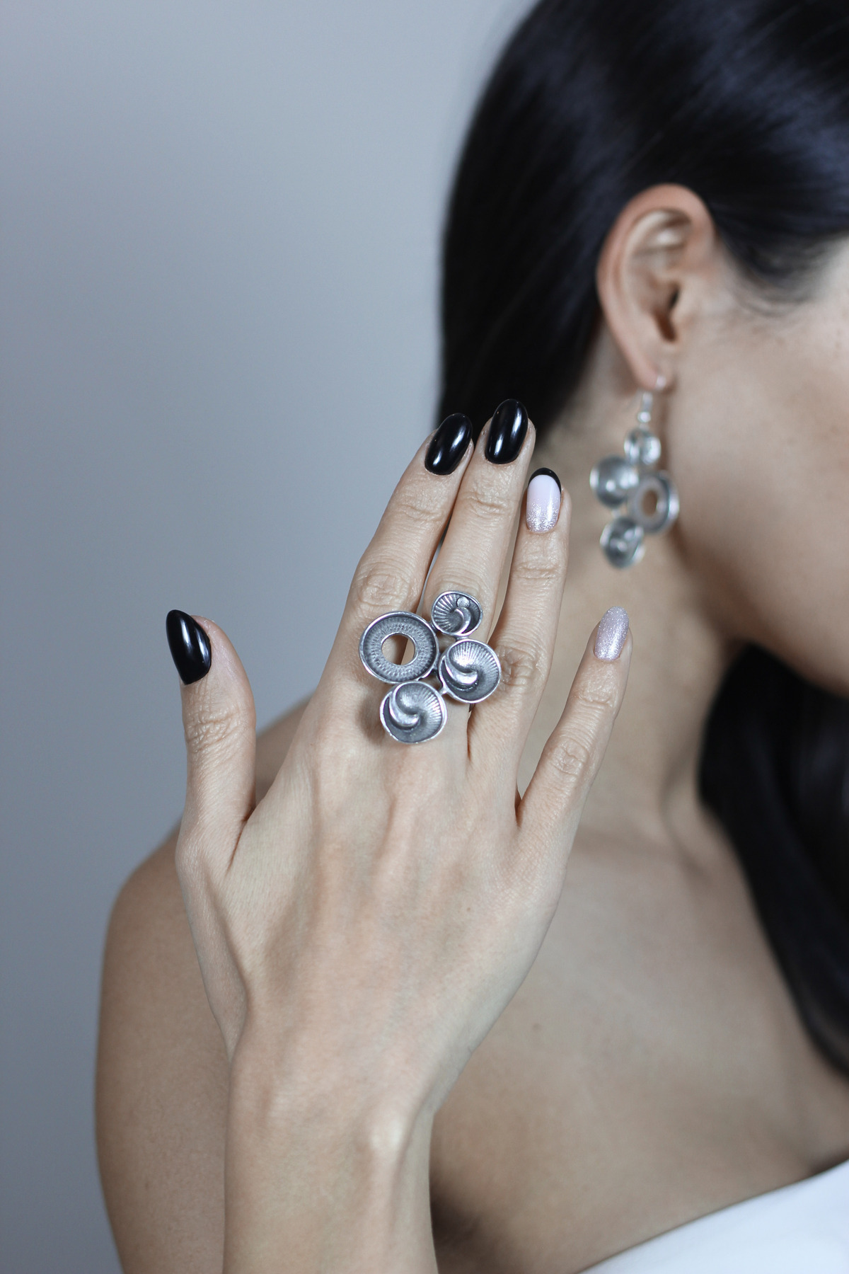 Gümüş Kaplama Kabartmalı Daire Desenli Büyük Yüzük Gümüş Kaplama Kabartmalı Daire Desenli Büyük Yüzük H2513Z97 LSTD