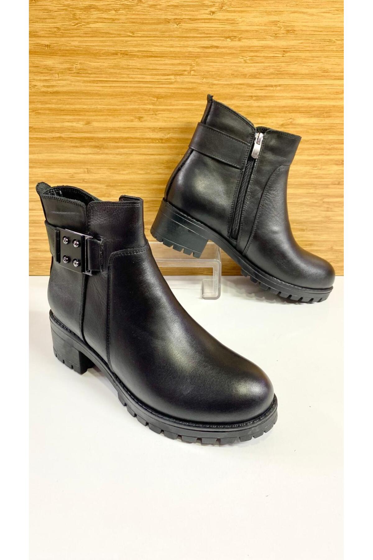 Kadın Siyah Hakiki Deri Ortopedik Taban Bot Kadın Siyah Hakiki Deri Ortopedik Taban Bot Yılmaz spor bot 40