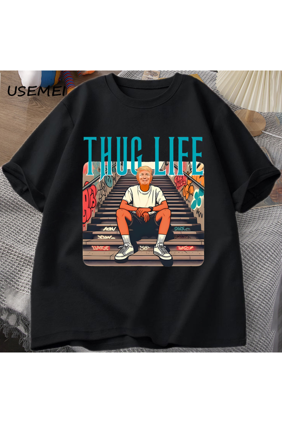 Komik Donald Trump Thug hayat Meme tişörtleri erkekler kadınlar grafikli tişört pamuk kısa ko Komik Donald Trump Thug hayat Meme tişörtleri erkekler kadınlar grafikli tişört pamuk kısa ko Drippy-Trap-Trend-3416 XL