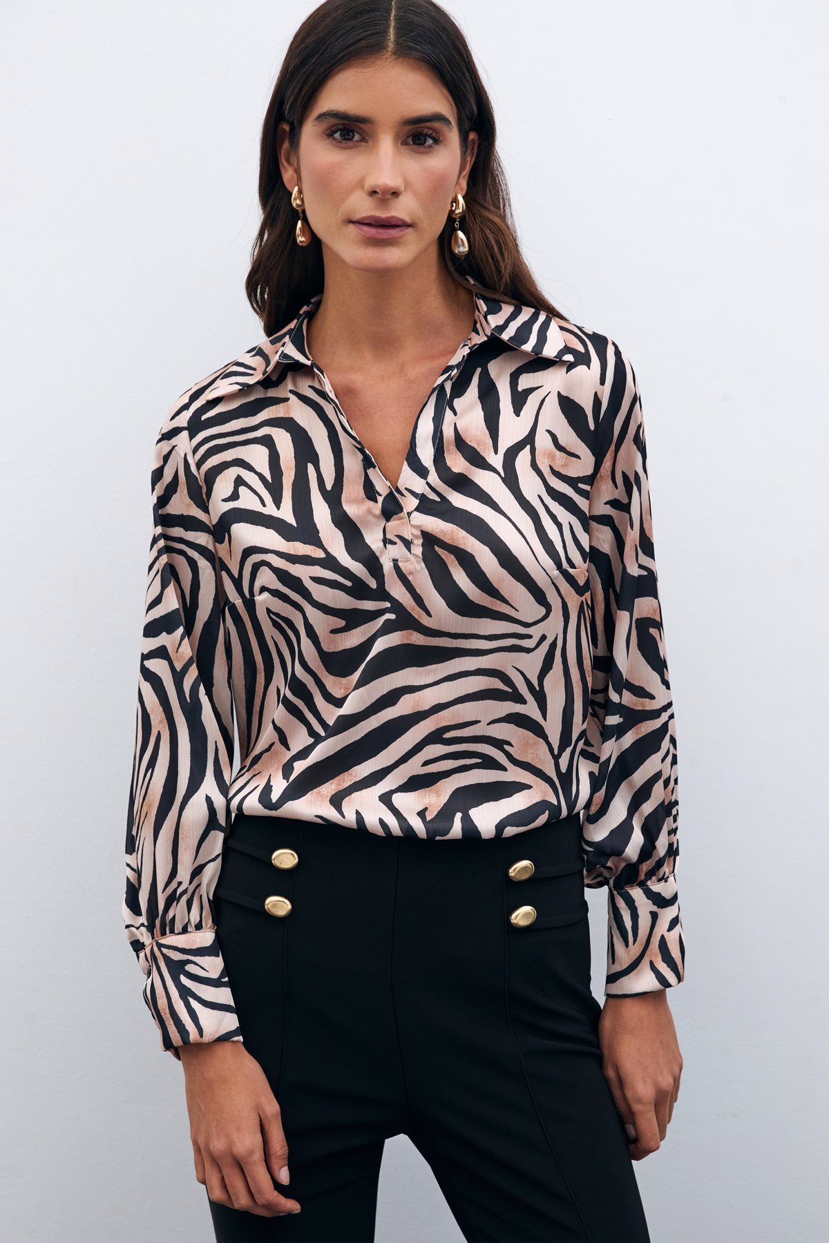 Desenli Gömlek Yaka Bluz - Siyah Desenli Gömlek Yaka Bluz - Siyah STN139KBL1632 42