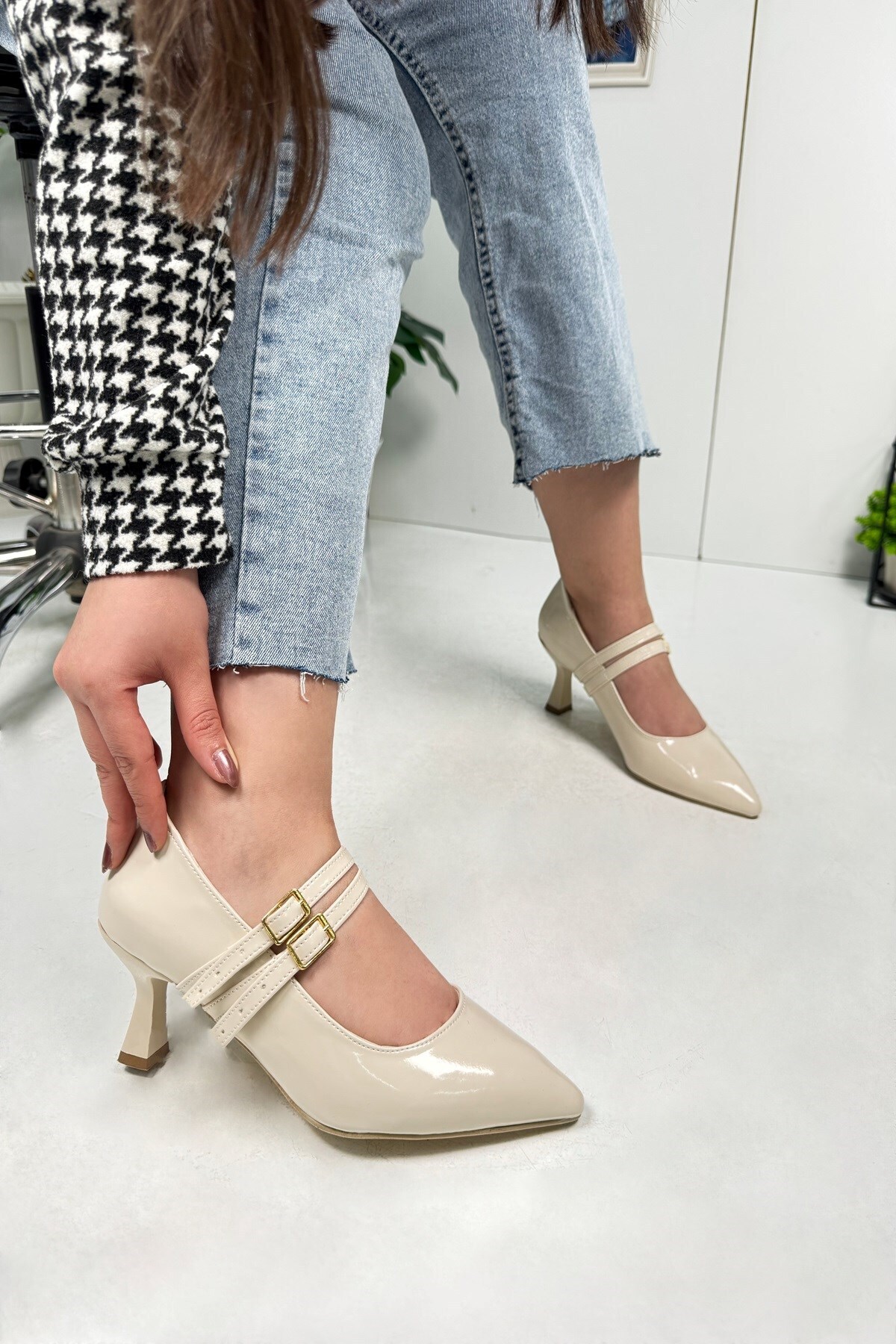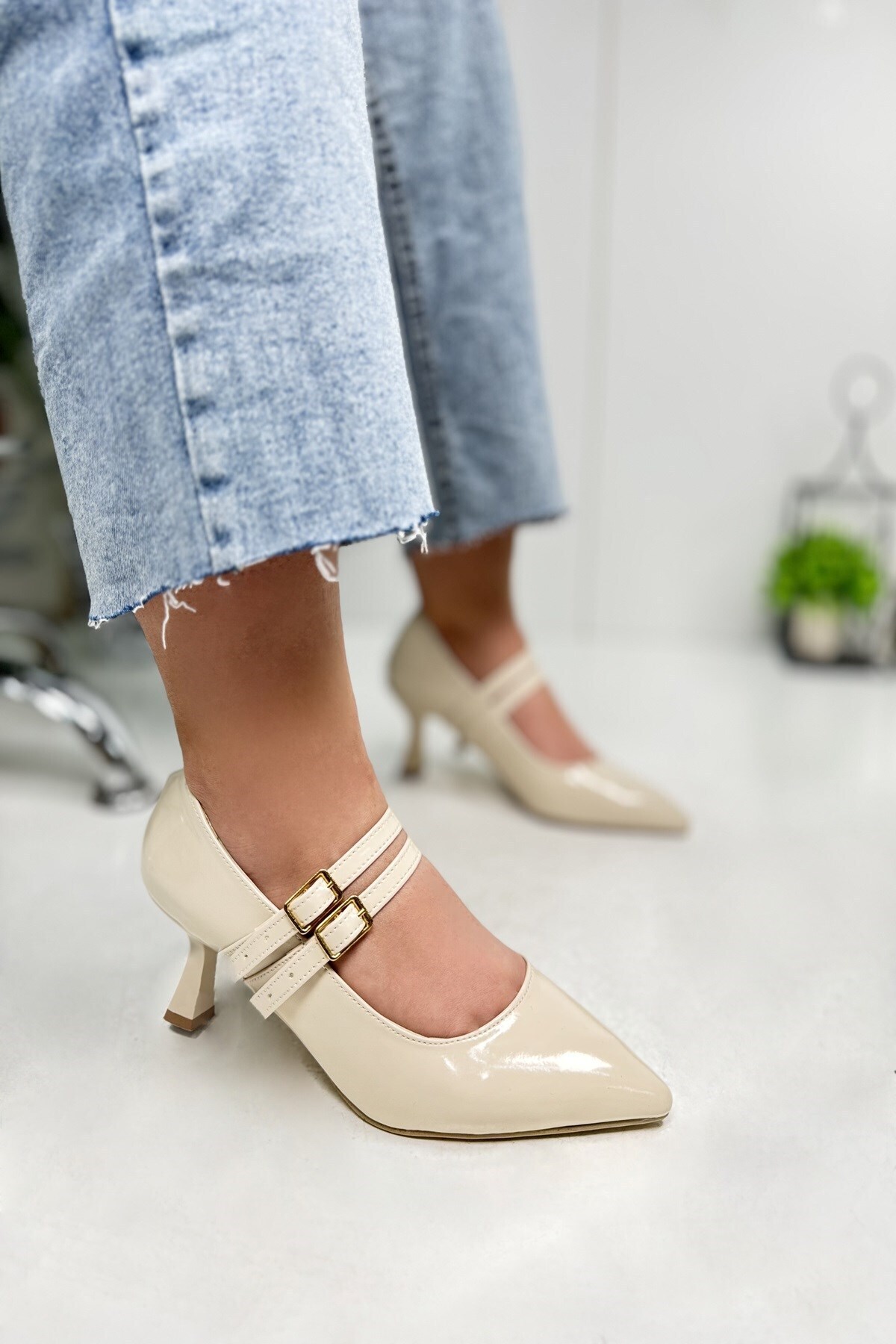 Günlük Kadın Bej Rugan Ince Topuklu Sivri Burun Çift Bantlı Tokalı Abiye Ayakkabı 100 Günlük Kadın Bej Rugan Ince Topuklu Sivri Burun Çift Bantlı Tokalı Abiye Ayakkabı 100 PRA-11399733-996840 40
