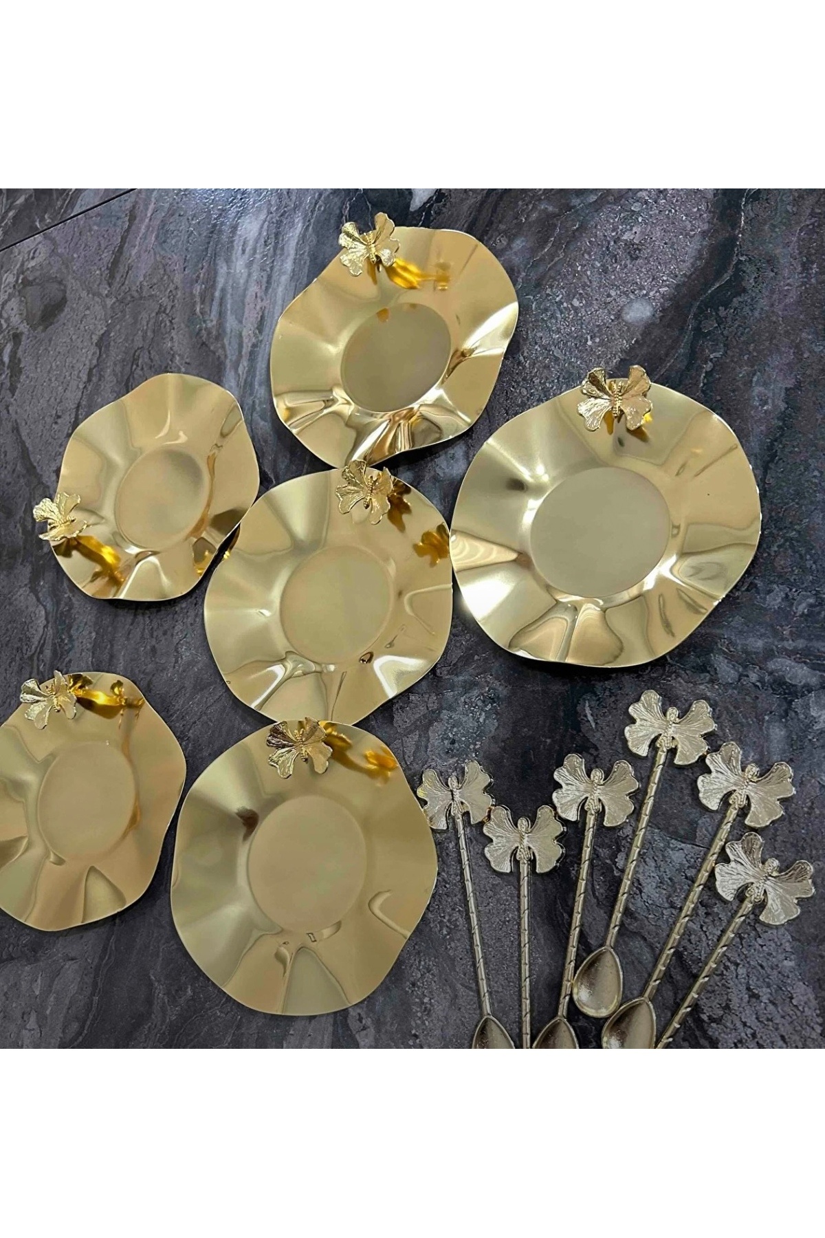 Titanyum Kaplama Romantik Çay Tabağı 6 'lı - Gold Titanyum Kaplama Romantik Çay Tabağı 6 'lı - Gold M-1059G تک سایز