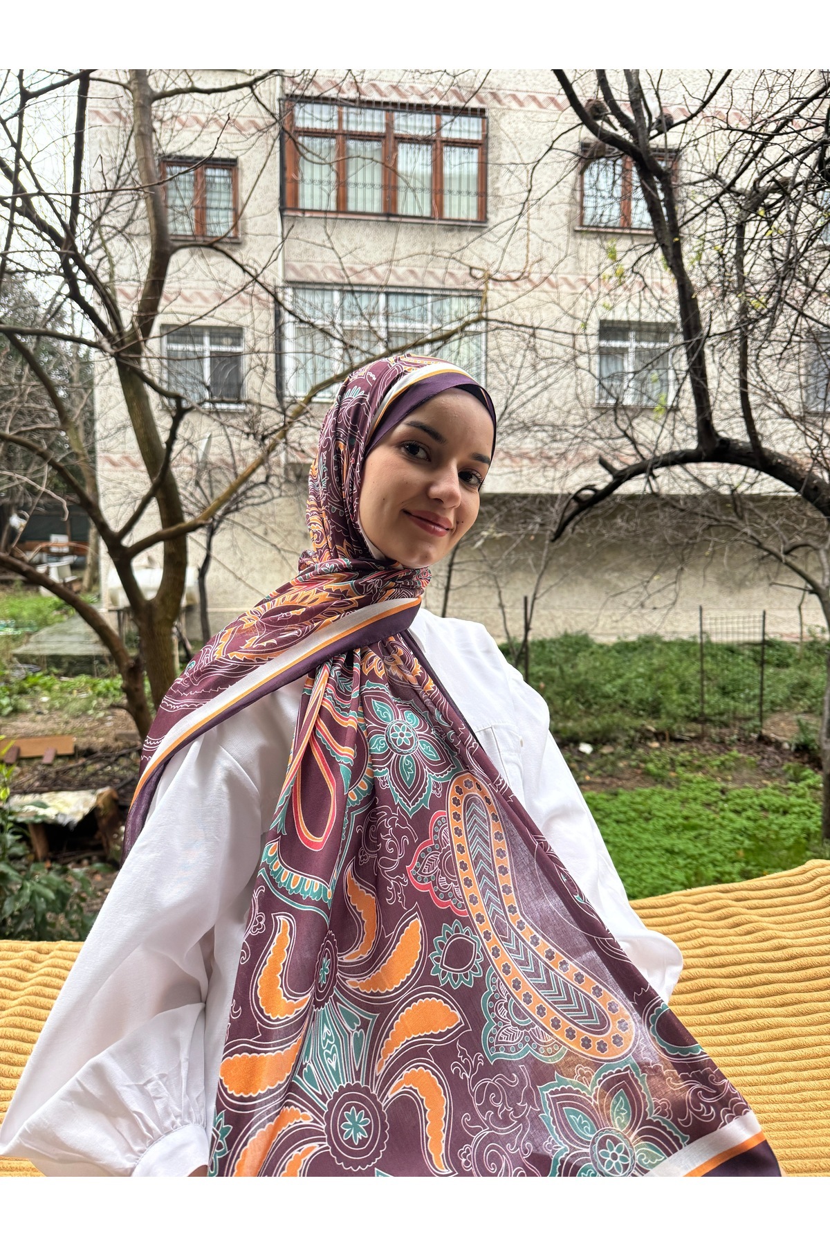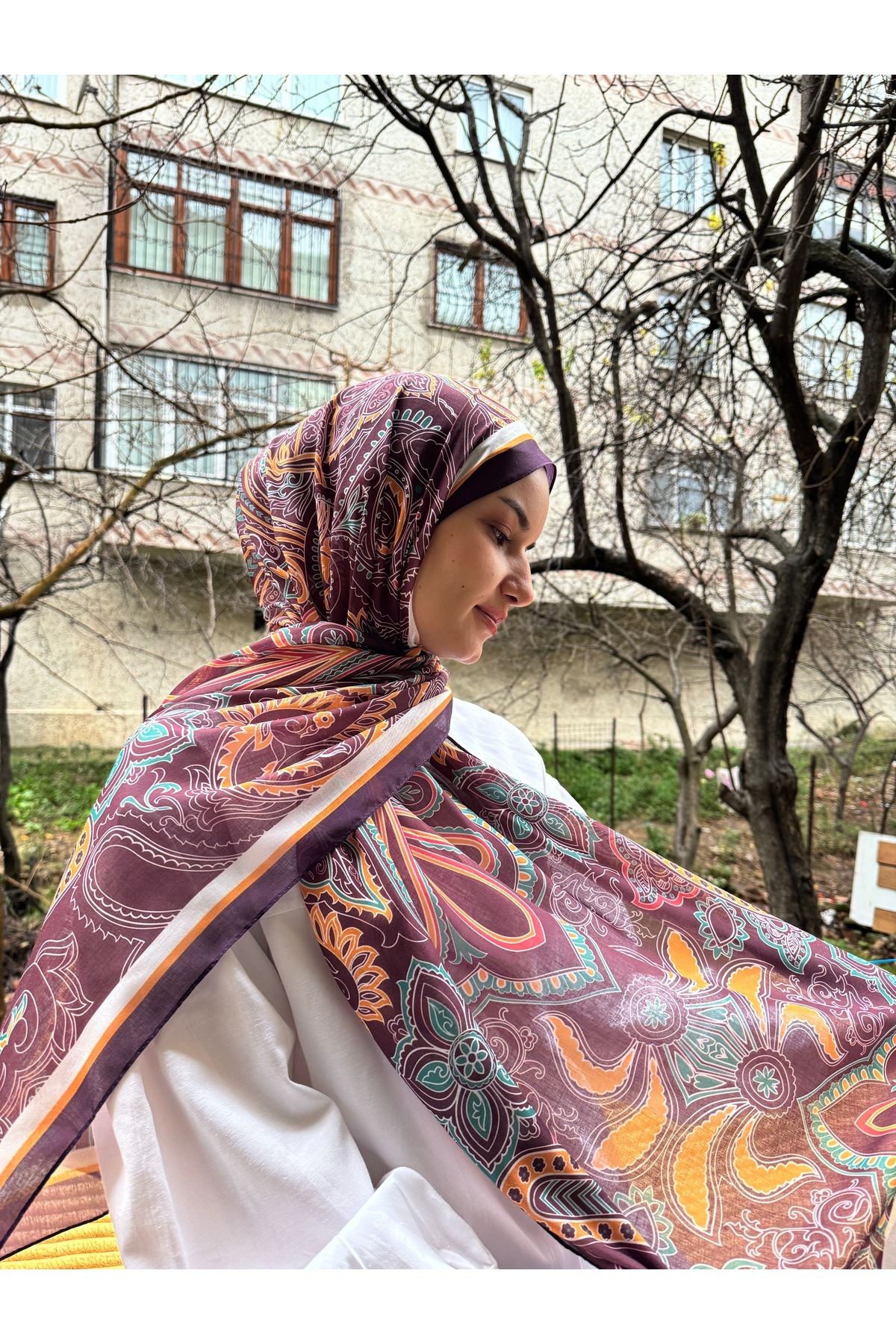 Tesettür Etnik Desenli Soft Pamuk Şal Mor-orange Tesettür Etnik Desenli Soft Pamuk Şal Mor-orange etnikshlby22 70 x 185