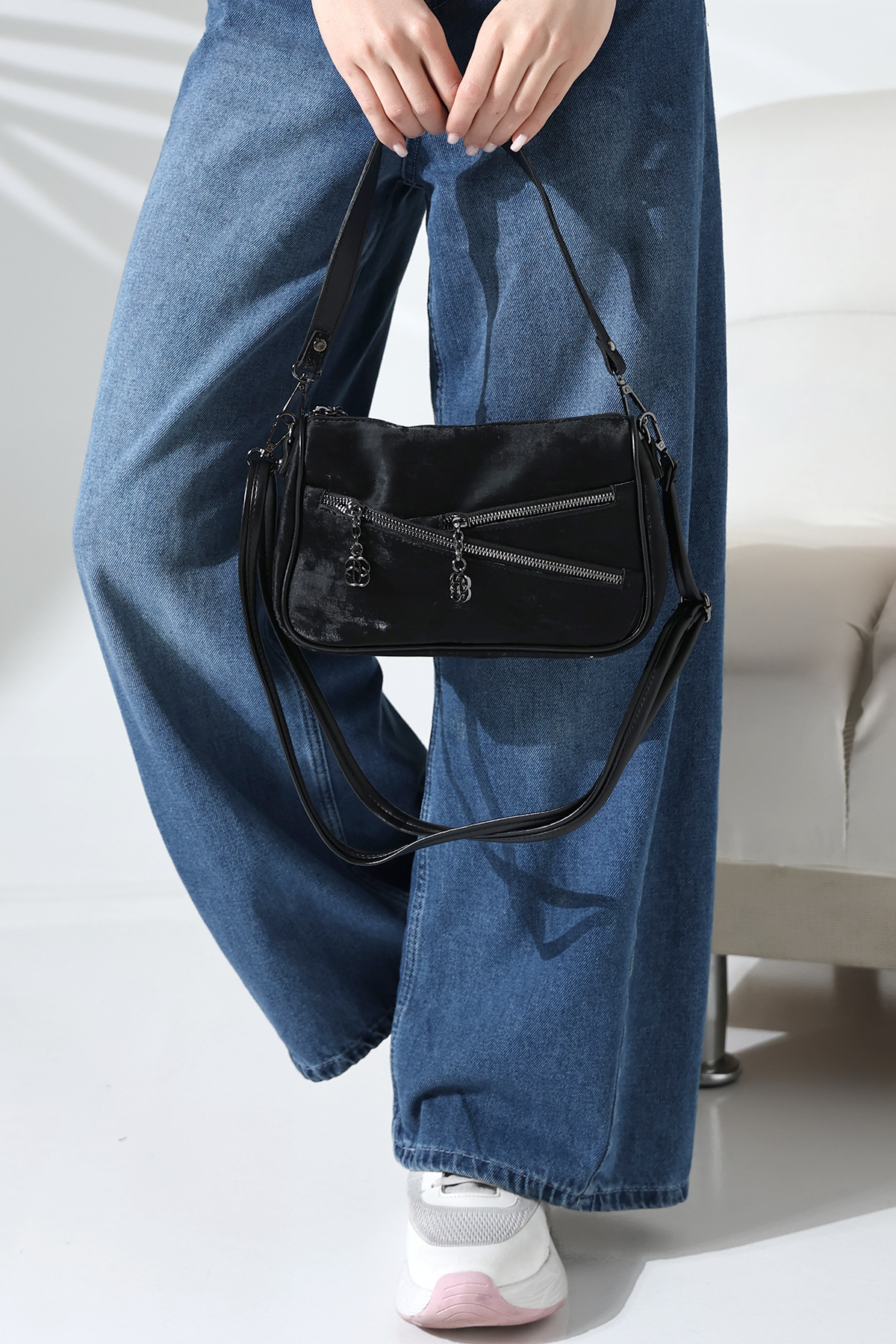 Siyah Süet Yumuşak Dokulu Fermuar Detaylı Çapraz Askılı Omuz Ve El Çantası Şık Modern Tasarım Siyah Süet Yumuşak Dokulu Fermuar Detaylı Çapraz Askılı Omuz Ve El Çantası Şık Modern Tasarım ENCL-SÜET-1 Standart