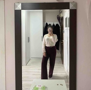 Kemerli Yüksek Bel Burgonya Bordo Kumaş Palazzo Pantolon Kemerli Yüksek Bel Burgonya Bordo Kumaş Palazzo Pantolon TİS-1011 XL