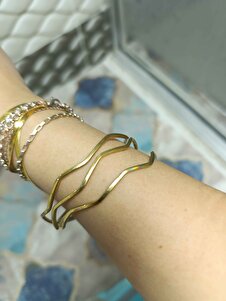 Kararmaz Çelik Gold 3'lü Zikzak Ajda Kararmaz Çelik Gold 3'lü Zikzak Ajda N202404 6 cm