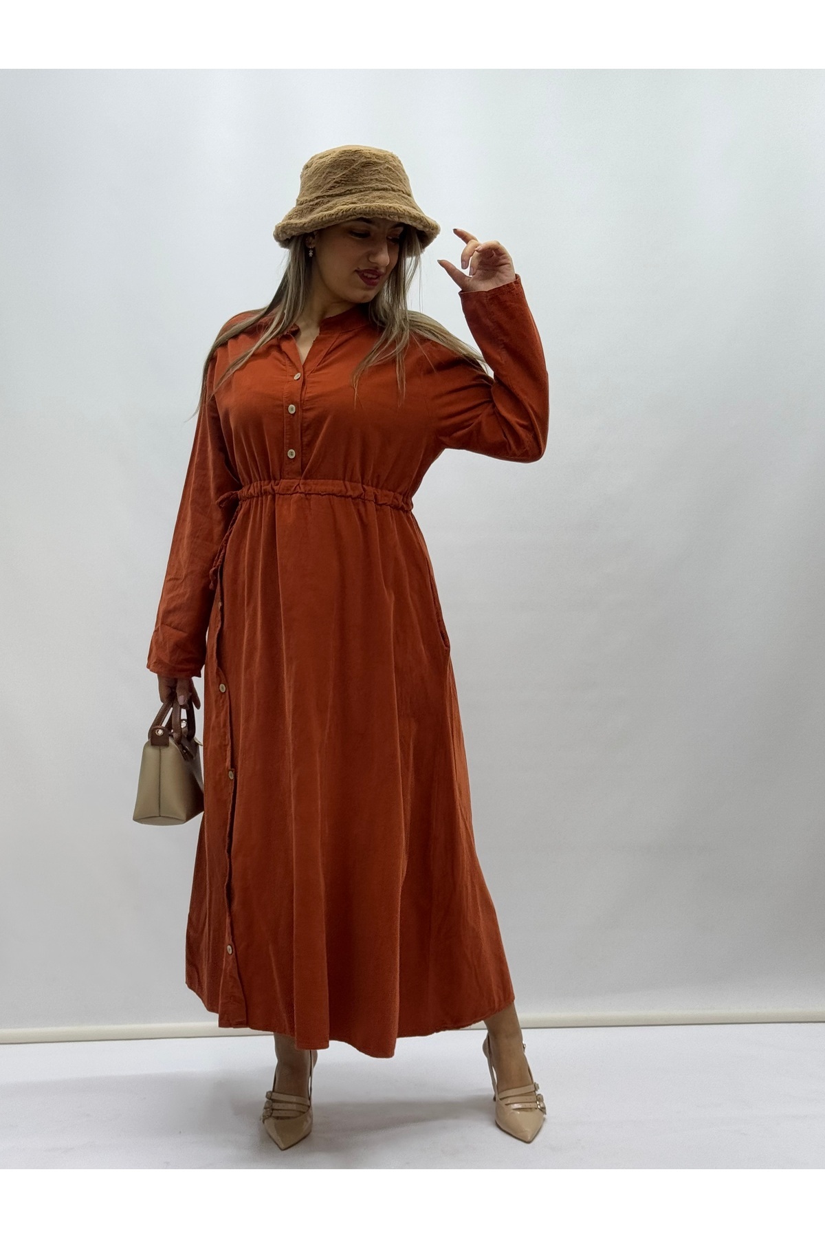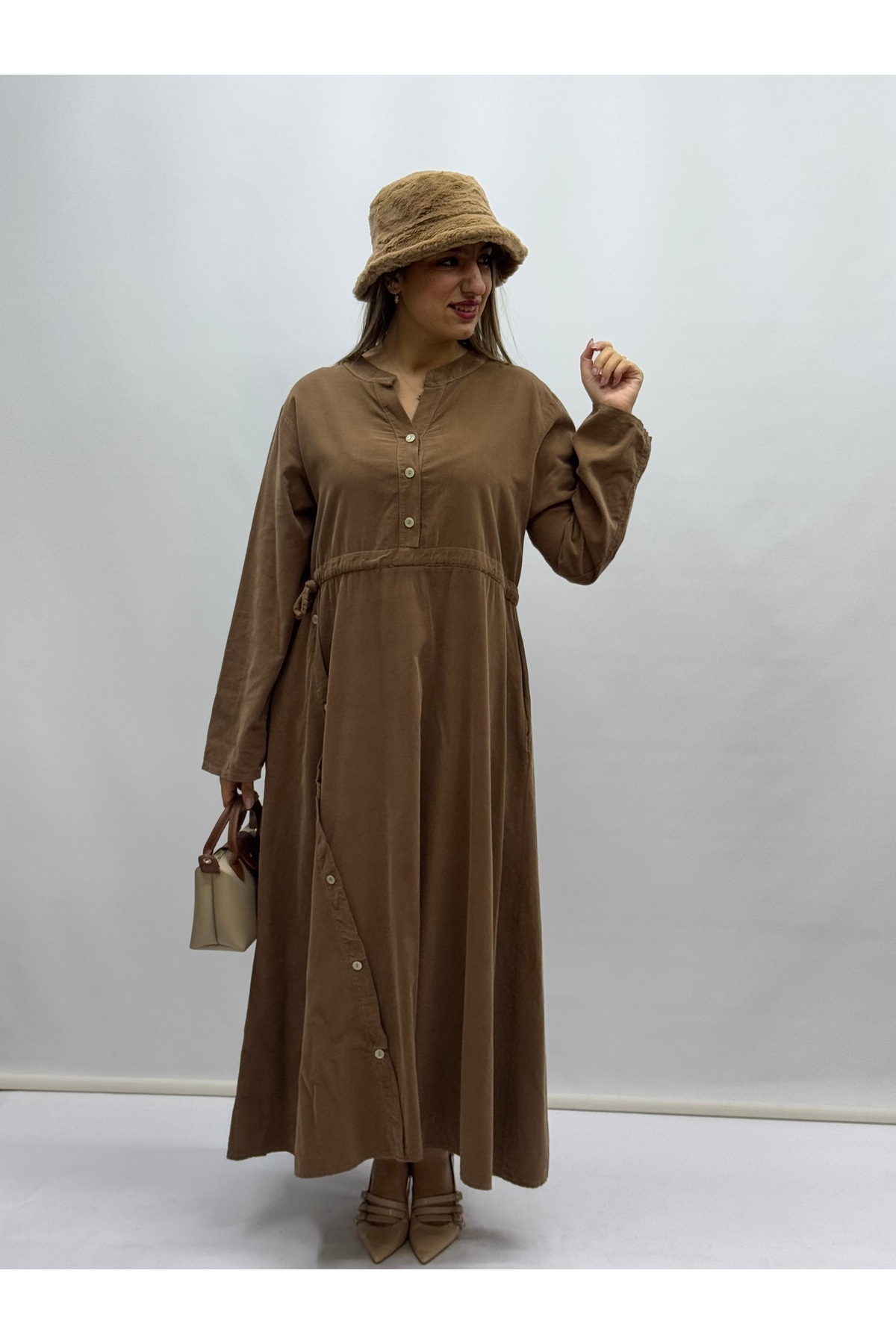 İTALYAN YARI PATLI BELDEN BAĞCIKLI İNCE FİTİLLİ KADİFE ELBİSE İTALYAN YARI PATLI BELDEN BAĞCIKLI İNCE FİTİLLİ KADİFE ELBİSE SF24405 Standart