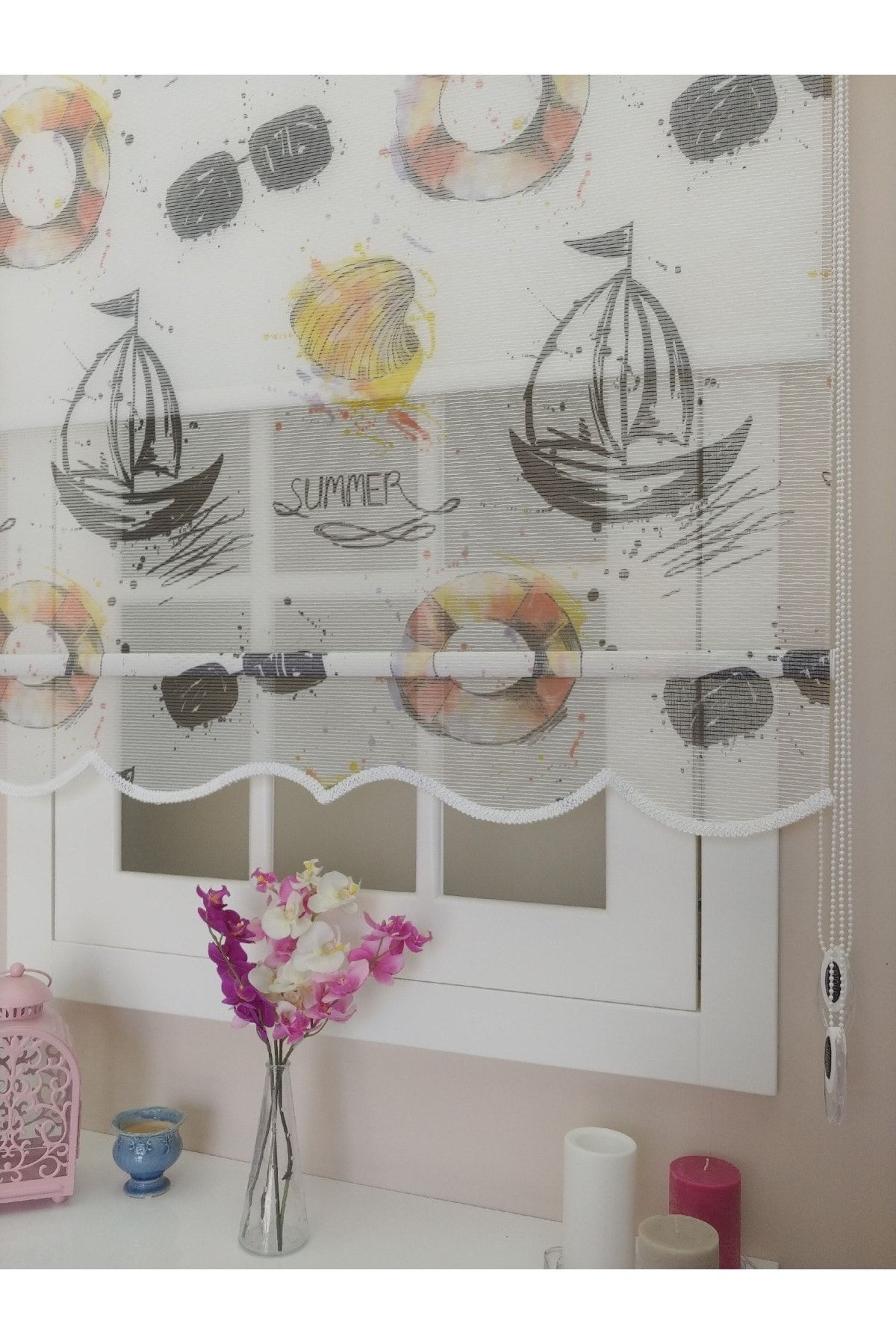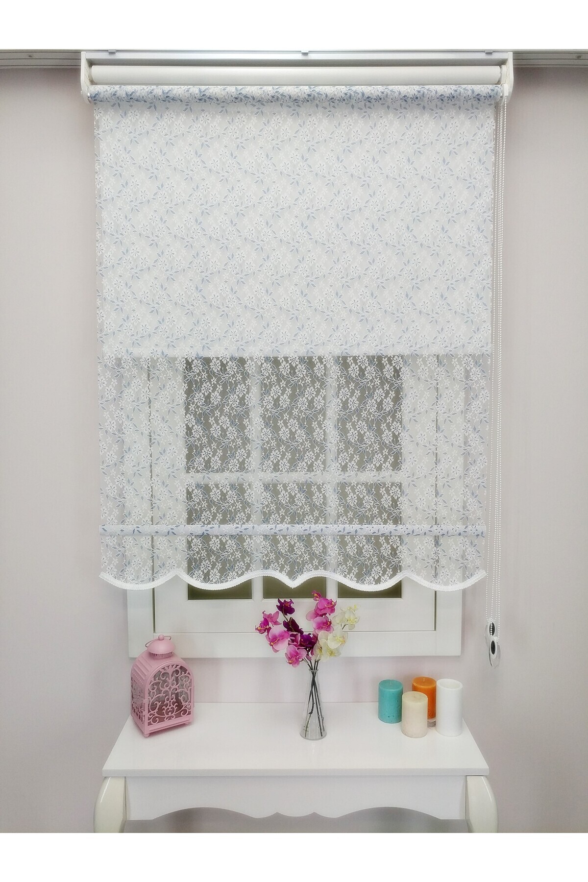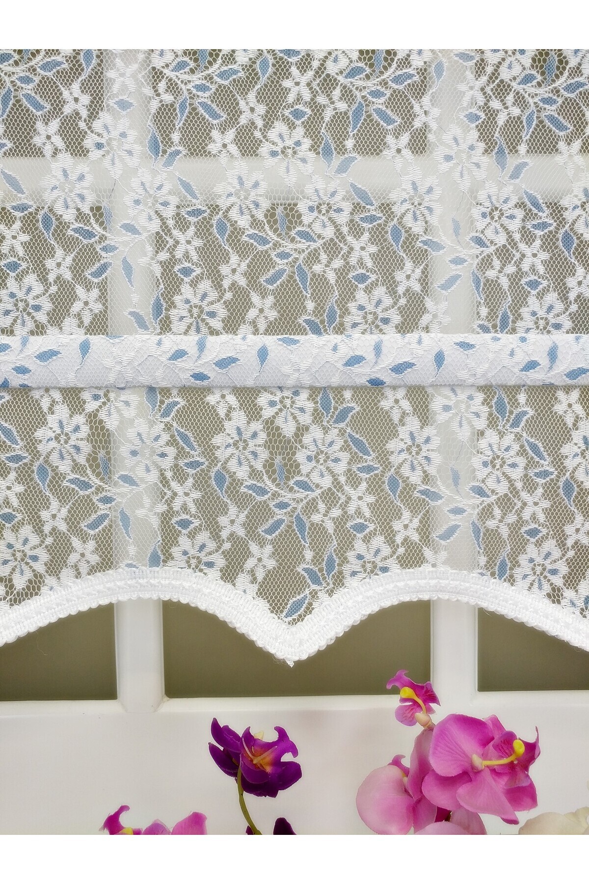 Atölye Perde Çiftli Sistem Yeni Beyaz-Mavi Papatya Dantel Series Tül + Stor Atölye Perde Çiftli Sistem Yeni Beyaz-Mavi Papatya Dantel Series Tül + Stor Aty158 110 x 200