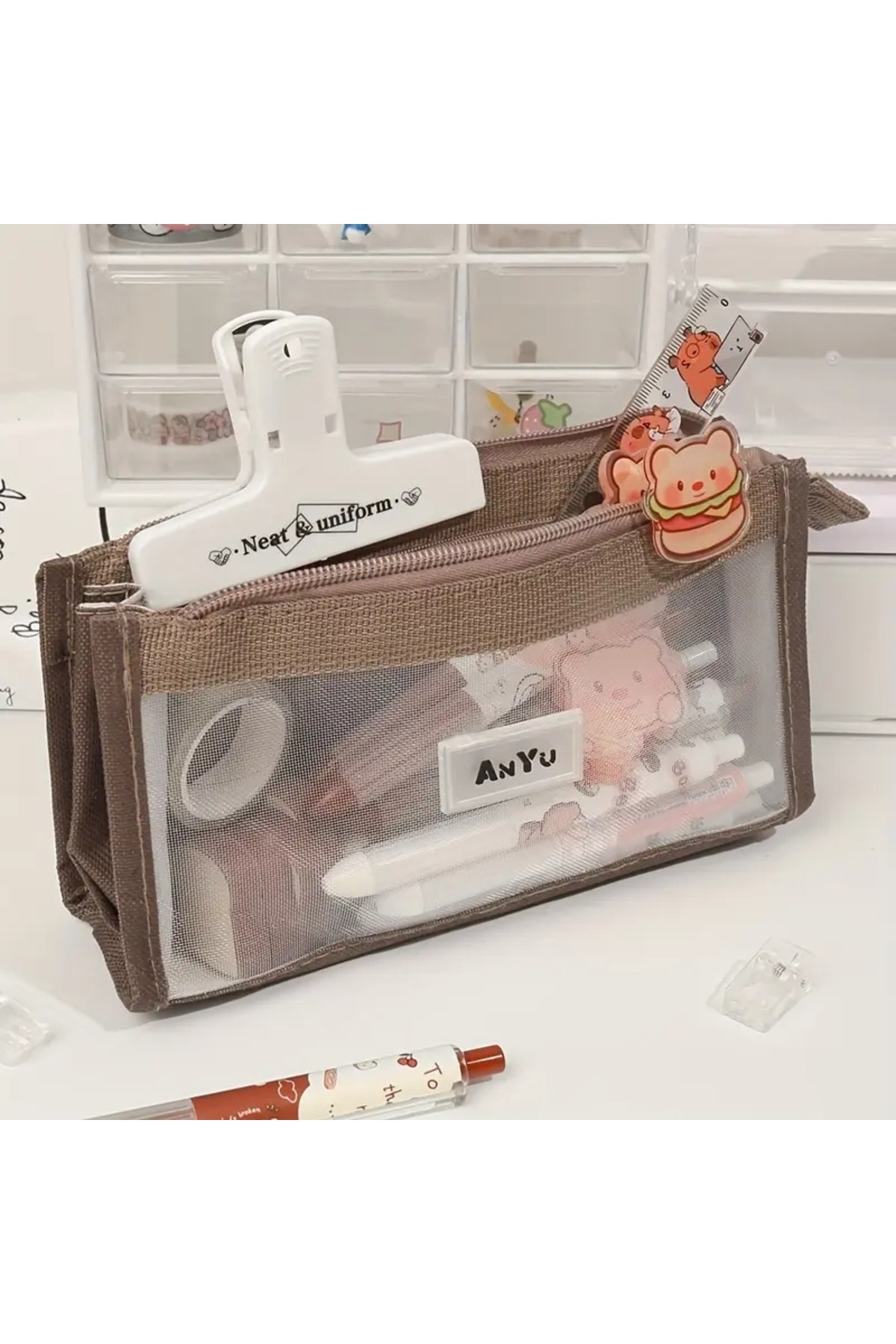 Morandi * Bej File Düzenleme Çantası Kalemlik Kozmetik Çantası Morandi * Bej File Düzenleme Çantası Kalemlik Kozmetik Çantası FİLELİ تک سایز