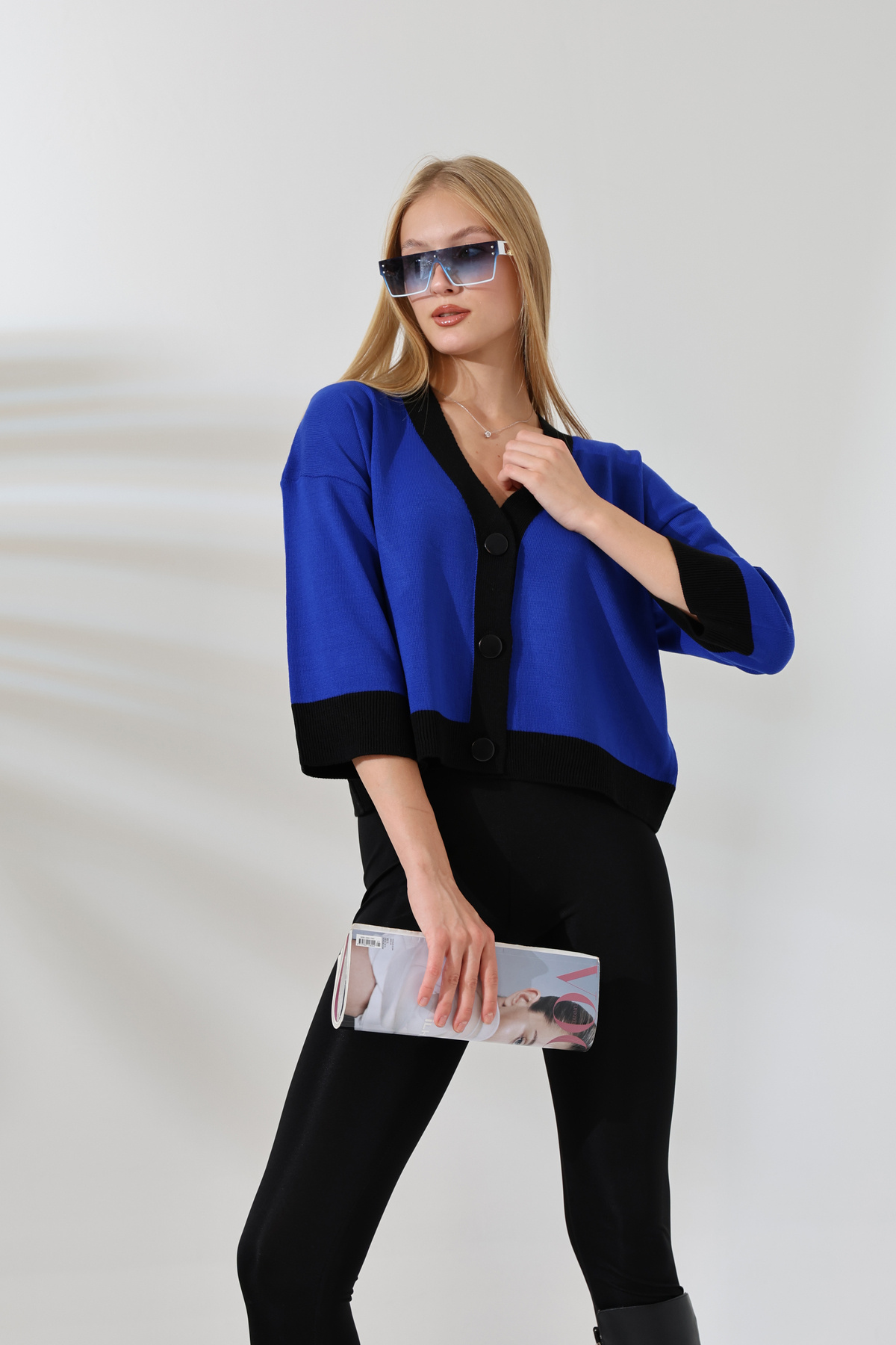 V Yaka Yarım Kol Üç Düğmeli Basic Kısa Şık Triko İnce Hırka V Yaka Yarım Kol Üç Düğmeli Basic Kısa Şık Triko İnce Hırka ALCH-00107 Standart