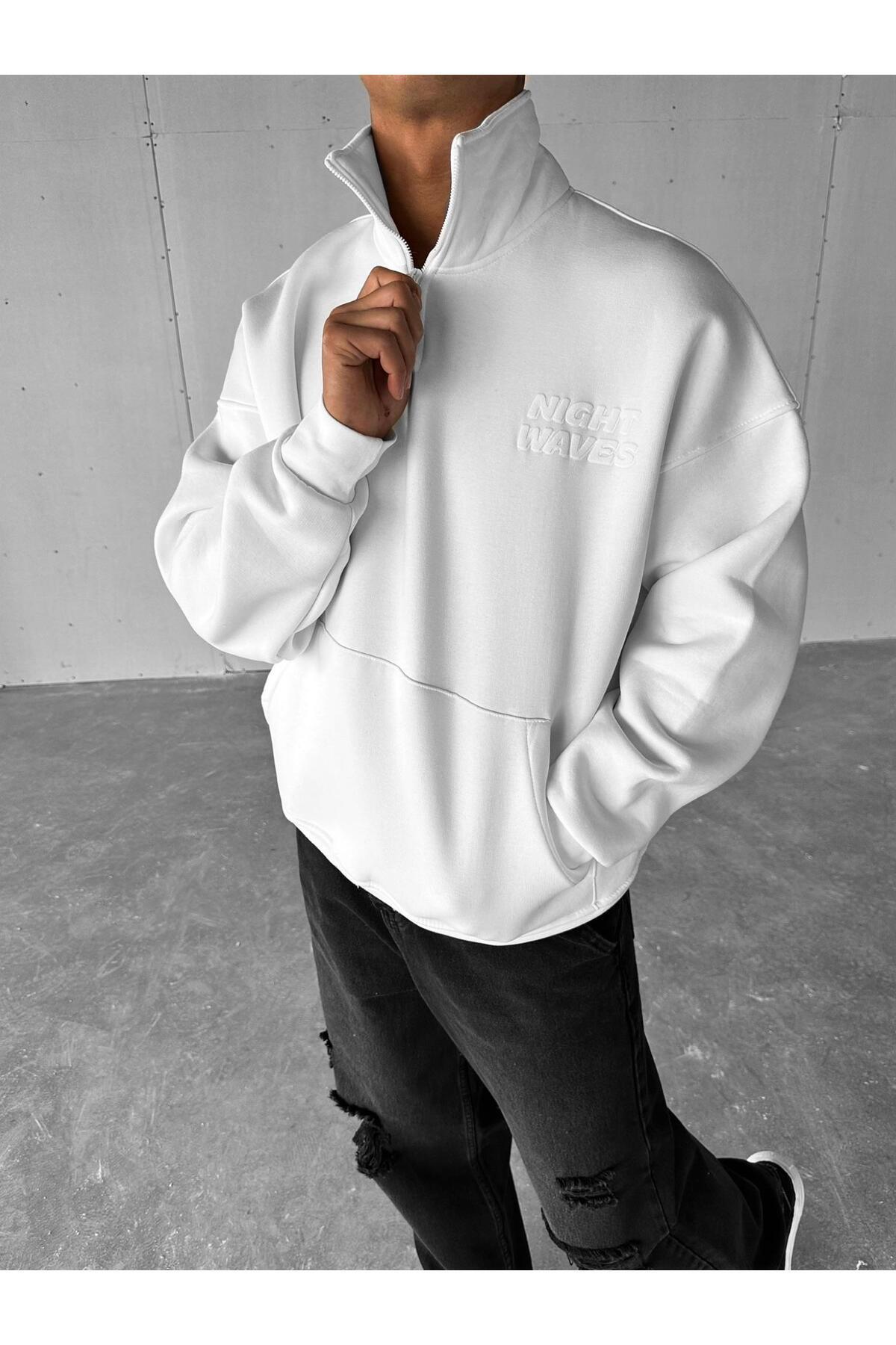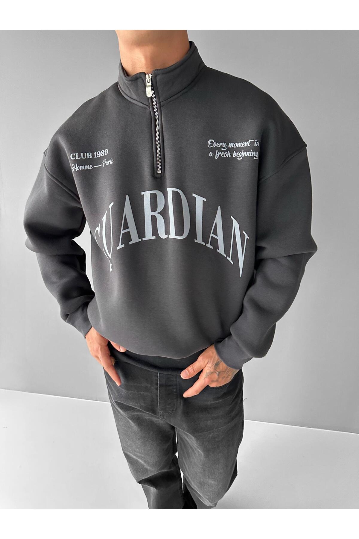 Erkek Oversize Yarım Fermuarlı Dik Yakalı Baskılı Sweatshirt Siyah Erkek Oversize Yarım Fermuarlı Dik Yakalı Baskılı Sweatshirt Siyah SWT.0085 XL
