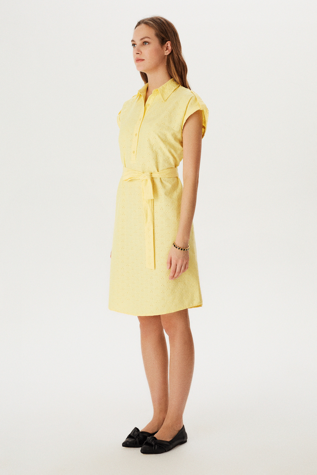 Düşük Kollu Gömlek Yakalı Nakışlı Elbise Düşük Kollu Gömlek Yakalı Nakışlı Elbise 22Y111121416 46