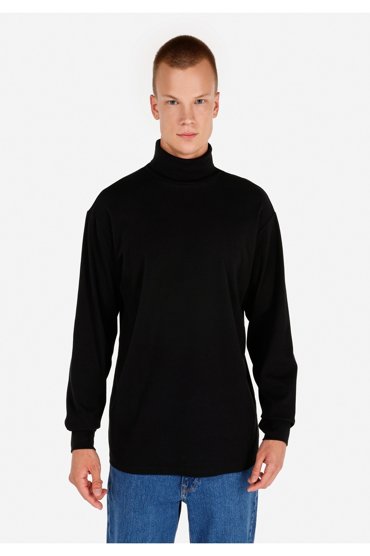 Boğazlı Siyah Tişört Loose Fit / Bol Rahat Kesim 0612409-900 Boğazlı Siyah Tişört Loose Fit / Bol Rahat Kesim 0612409-900 2XL