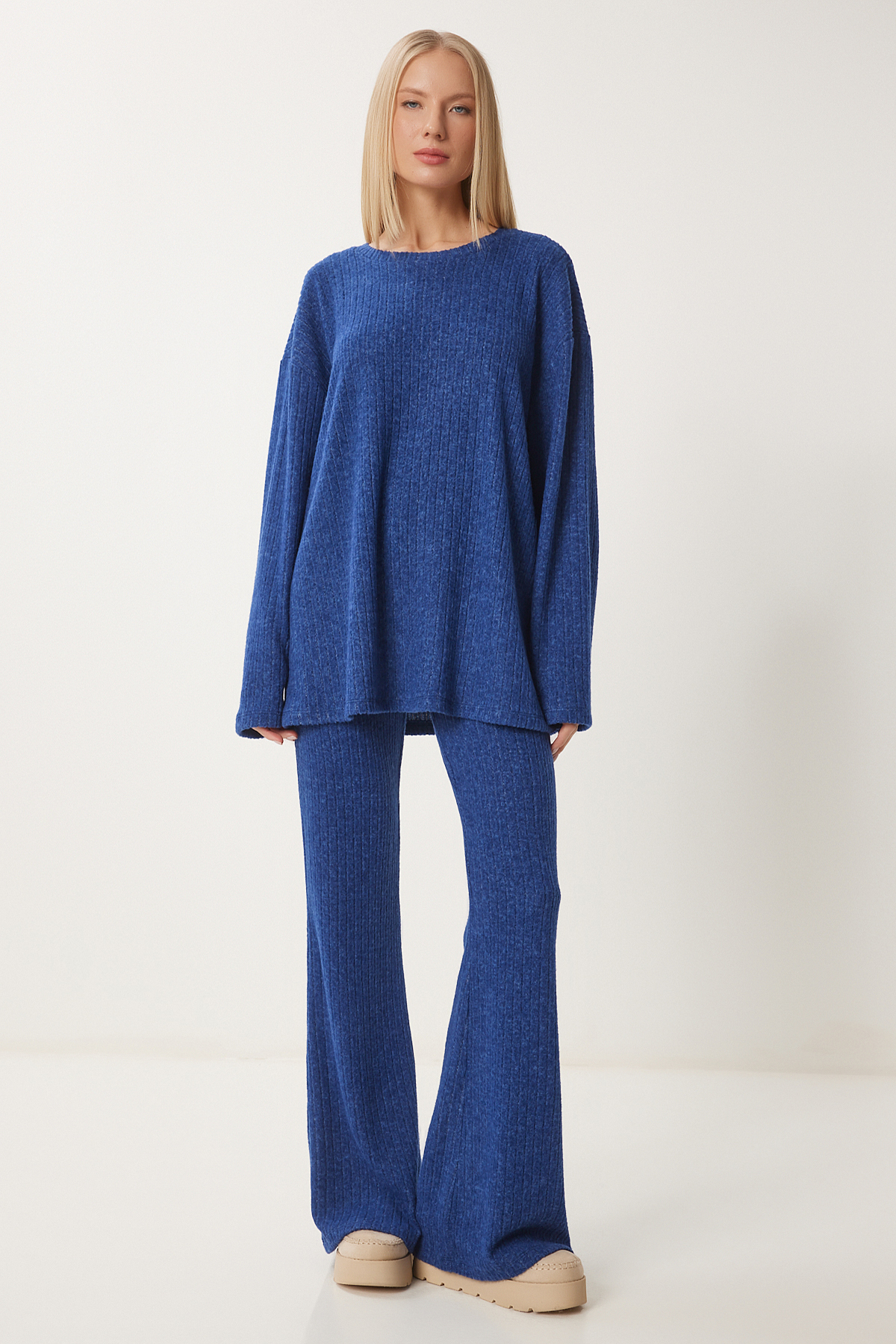 Kadın Gri Rahat Fitilli Örme Bluz Pantolon Takım RG00047 Kadın Gri Rahat Fitilli Örme Bluz Pantolon Takım RG00047 40