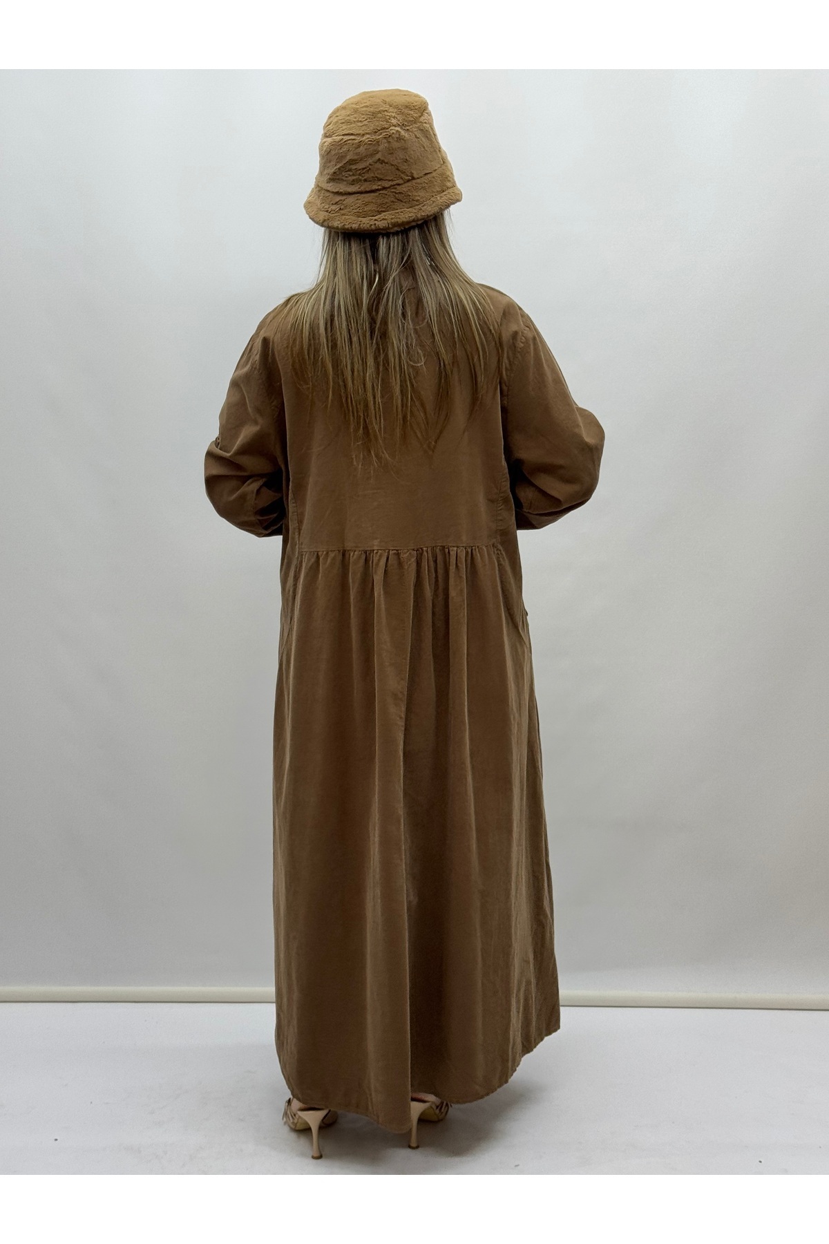 İTALYAN GÜL DETAYLI YARI PATLI CEPLİ İNCE FİTİLLİ KADİFE ELBİSE İTALYAN GÜL DETAYLI YARI PATLI CEPLİ İNCE FİTİLLİ KADİFE ELBİSE SF24557 Standart
