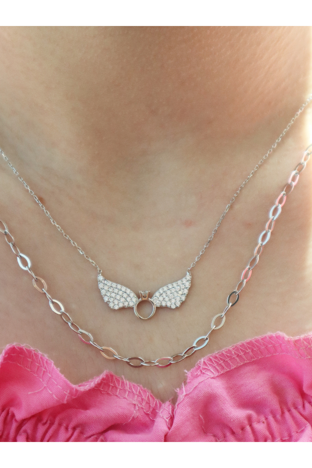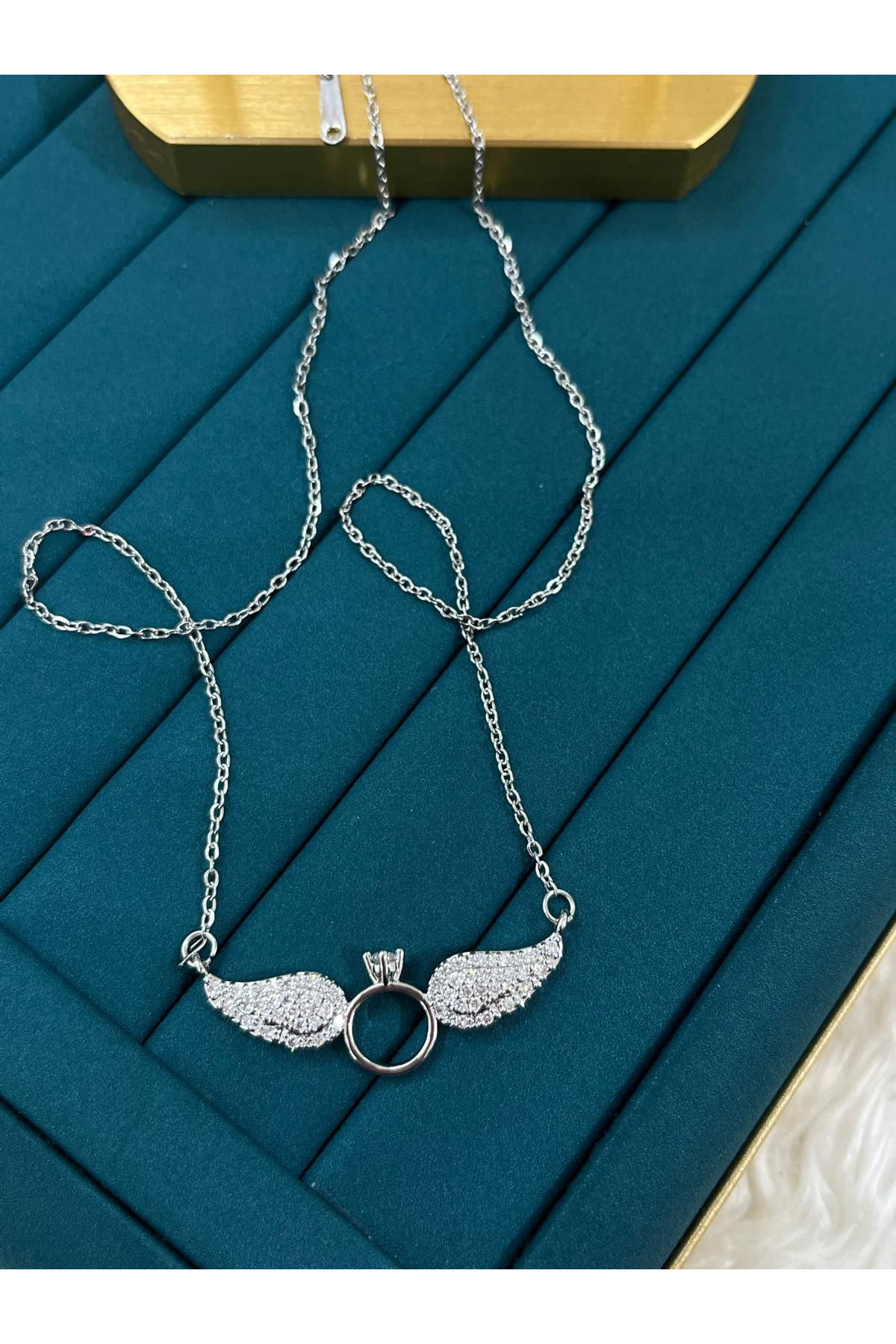 Melek Kanatlı Tek Taş Yüzük Kolye | 316L Çelik | Zirkon Taş | Gümüş Renk | 50 Cm | Kutulu Melek Kanatlı Tek Taş Yüzük Kolye | 316L Çelik | Zirkon Taş | Gümüş Renk | 50 Cm | Kutulu DesignedForYou628 50 cm