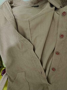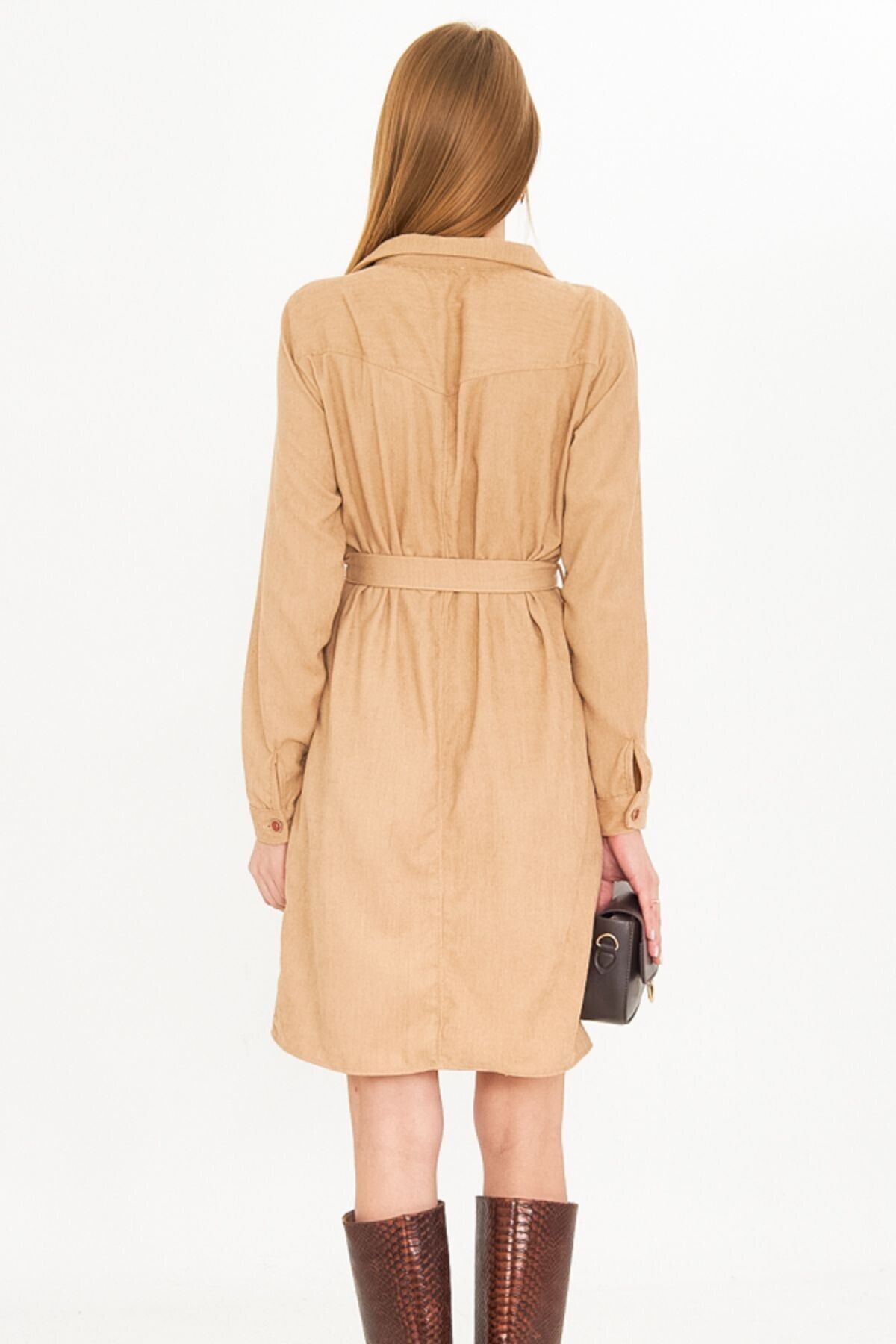 Kadın Bej Önden Düğmeli Cepli Kuşaklı Kadife Elbise ARM-25K001085 Kadın Bej Önden Düğmeli Cepli Kuşaklı Kadife Elbise ARM-25K001085 XL
