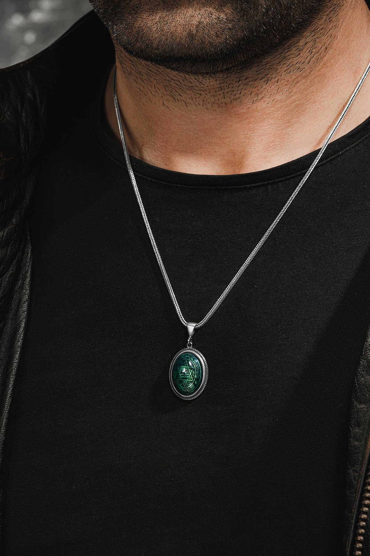 Erkek Gümüş Kolye - Yeşil Hz. Süleyman Mührü Erkek Gümüş Kolye Erkek Gümüş Kolye - Yeşil Hz. Süleyman Mührü Erkek Gümüş Kolye amn0052 70 cm