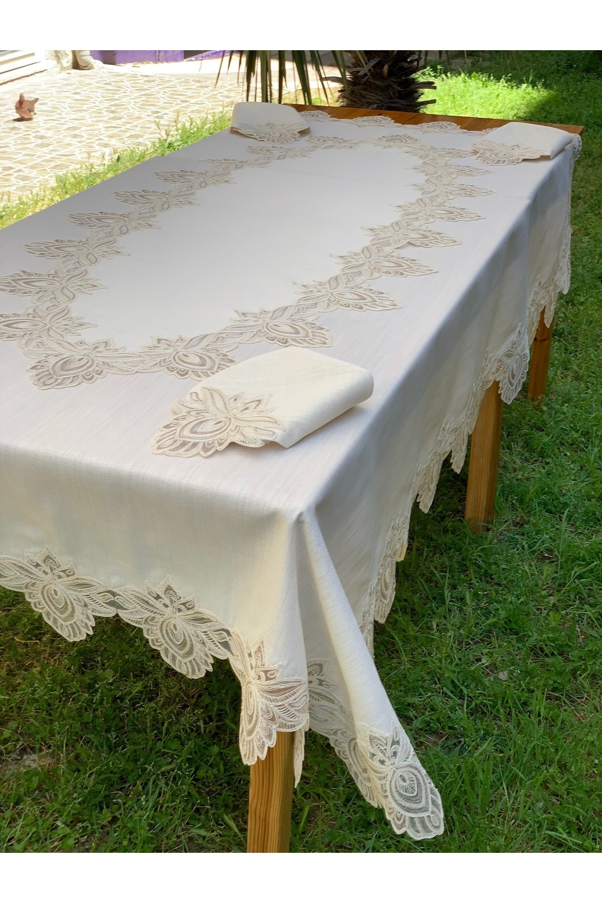 Fransız Dantelli Bal Köpügü Renk Masa Örtüsü 160*220 cm 1 adet Runner 12 adet Peçete Fransız Dantelli Bal Köpügü Renk Masa Örtüsü 160*220 cm 1 adet Runner 12 adet Peçete LK78F 160 x 220