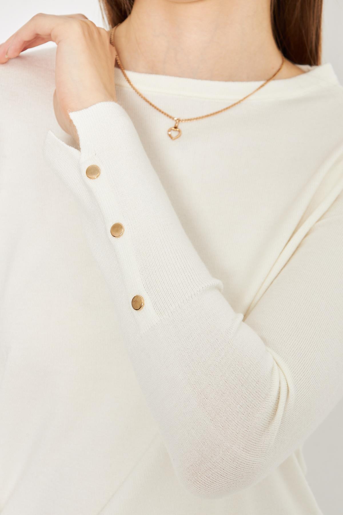 Kadın Ekru Bisiklet Yaka Kolu Çıtçıtlı Triko Kazak 1060 Kadın Ekru Bisiklet Yaka Kolu Çıtçıtlı Triko Kazak 1060 Standart