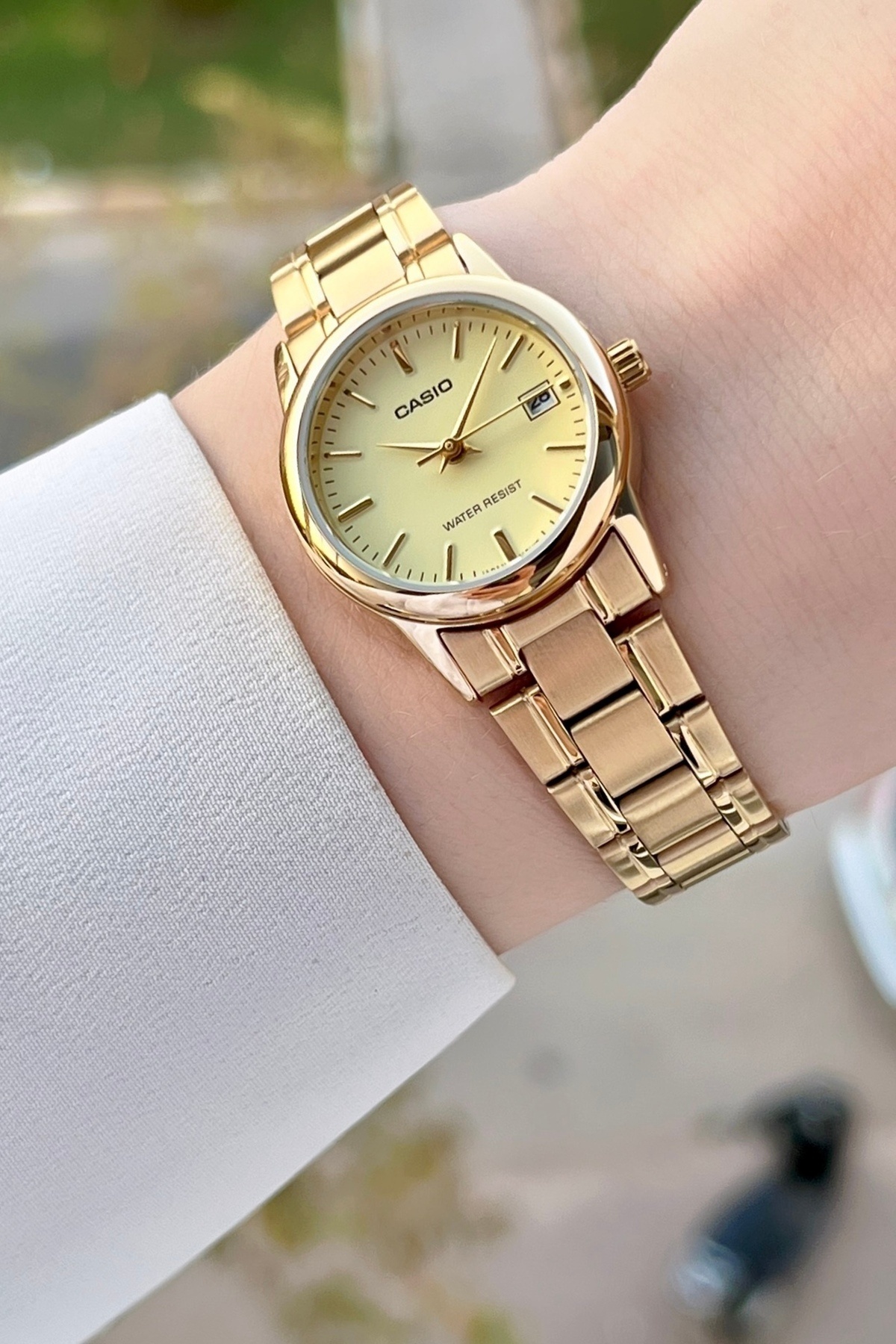 Gold Renk Takvimli Kadın Kol Saati Gold Renk Takvimli Kadın Kol Saati LETISTEYP2GCDEY تک سایز