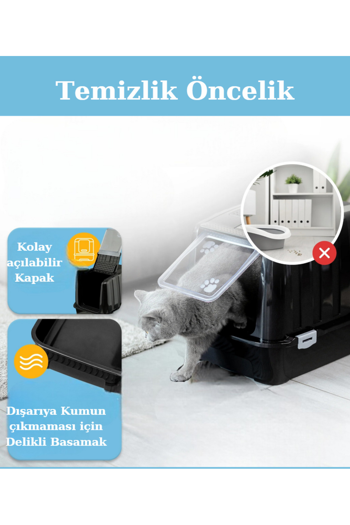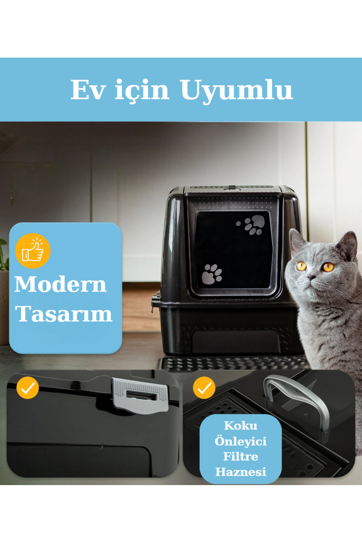 Kapalı Kedi Tuvaleti Mama Kabı Hediyeli Kapalı Kedi Tuvaleti Mama Kabı Hediyeli PT305FLSBZR تک سایز