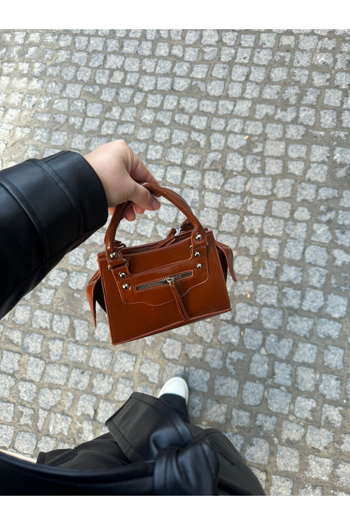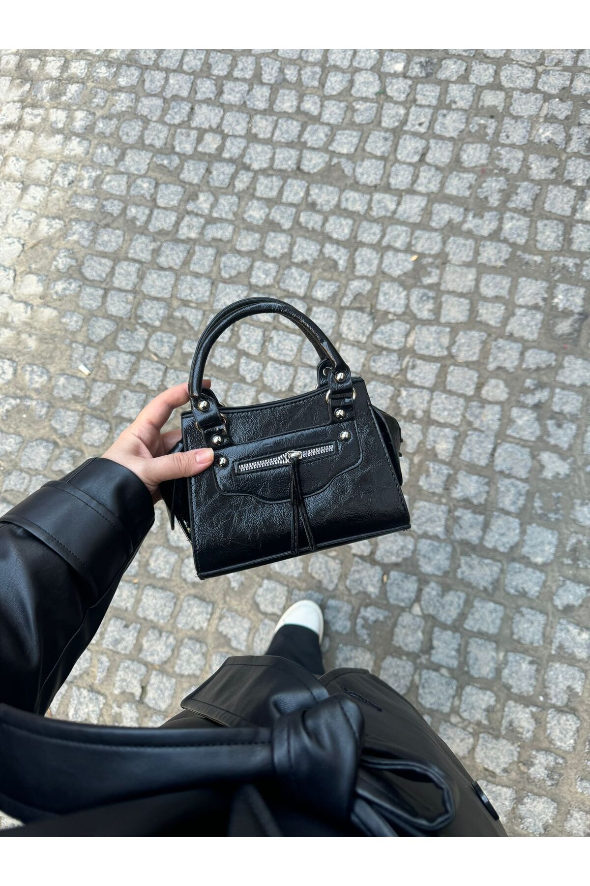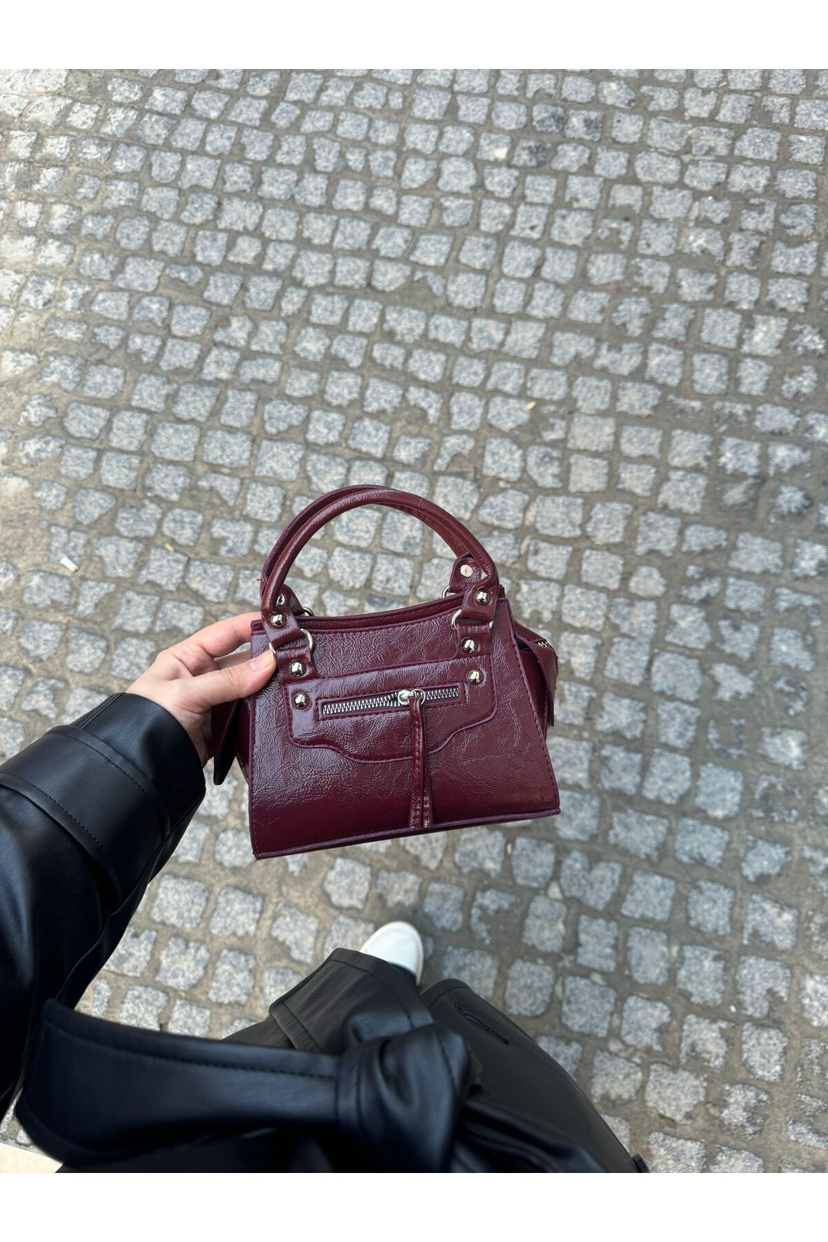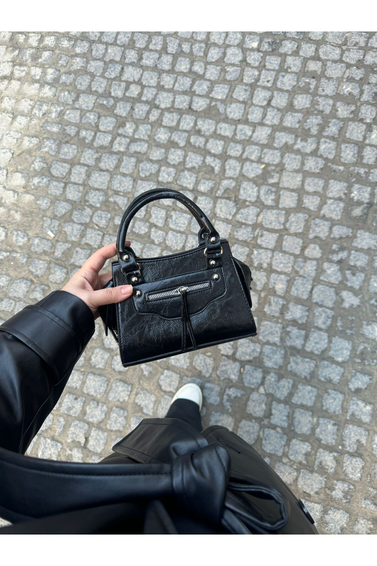 Kadın Mini Deri Fermuar Aksesuarlı Omuz Çantası Kadın Mini Deri Fermuar Aksesuarlı Omuz Çantası MODASKZ35 XS/S