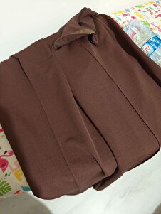 Ultra Yüksek Bel Kumaş Krep Palazzo Pantolon Kahverengi Ultra Yüksek Bel Kumaş Krep Palazzo Pantolon Kahverengi CPSZLKRL003 4XL