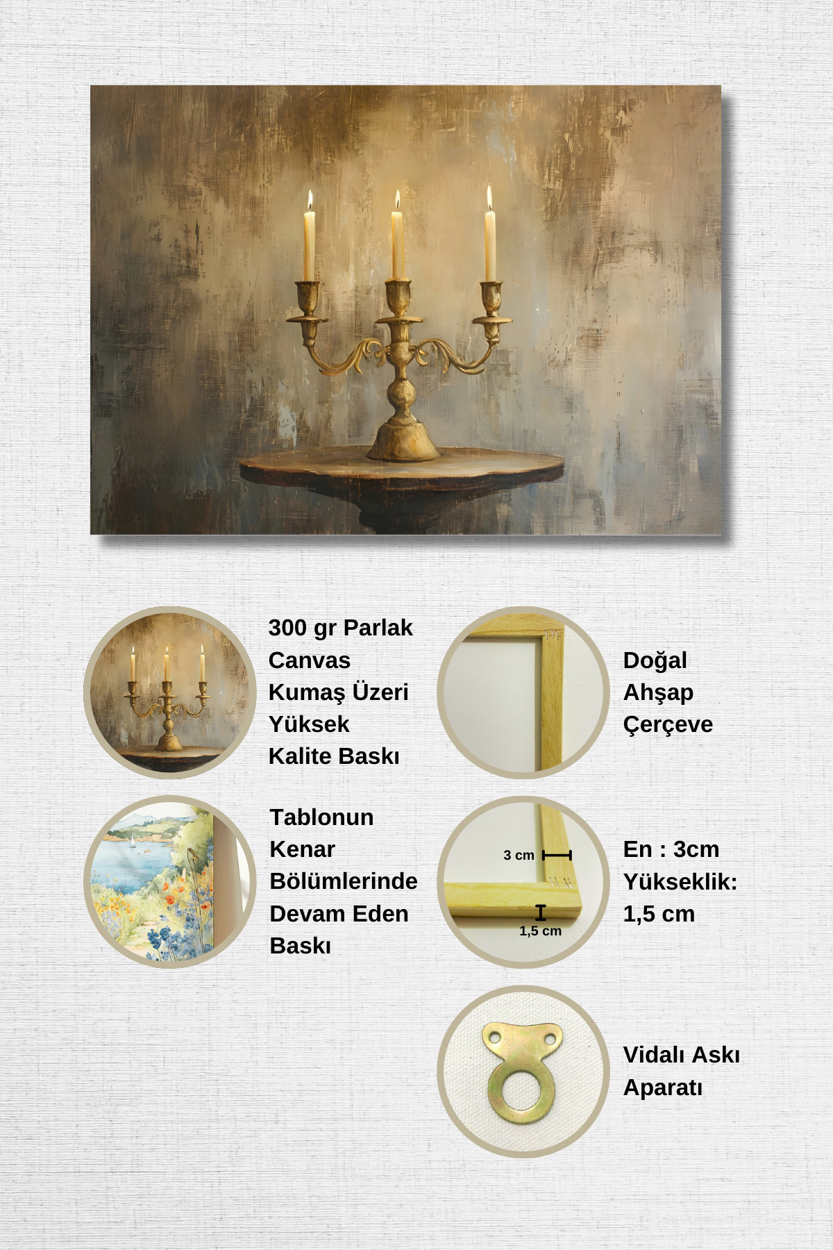 Üç Kollu Şamdan Vintage Kanvas Tablo - Yağlı Boya Kanvas Tablo - Ev Ofis Duvar Dekoru 1CNVS171 Üç Kollu Şamdan Vintage Kanvas Tablo - Yağlı Boya Kanvas Tablo - Ev Ofis Duvar Dekoru 1CNVS171 70 x 50