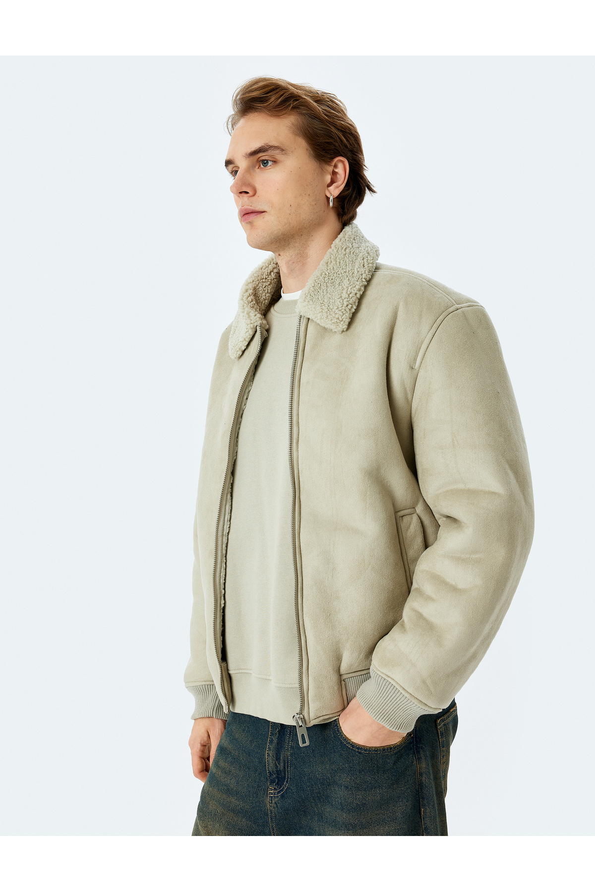 Slim Fit Fermuarlı İçi Peluş Suni Süet Ceket Slim Fit Fermuarlı İçi Peluş Suni Süet Ceket 5WAM20030HW XL