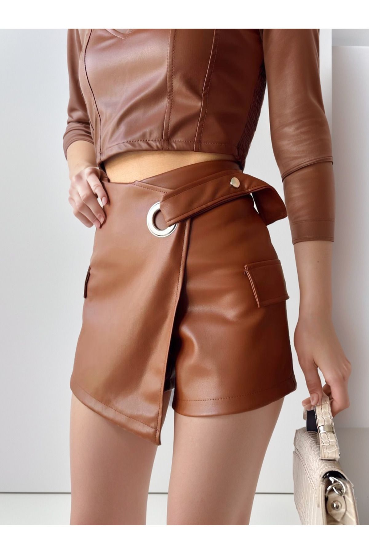 Deri mini şortlu etek Deri mini şortlu etek Mnsrtlu 2XL