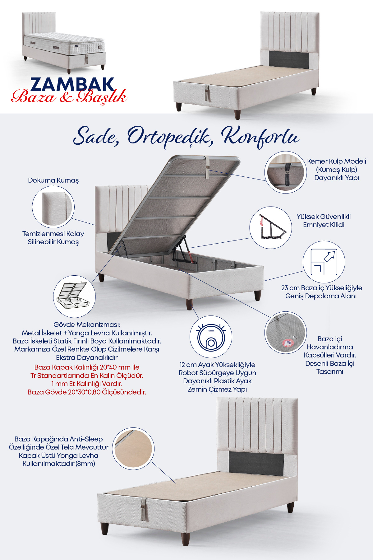 Zambak Tek Kişilik Sandıklı Baza + Full Ortopedik Antibakteriyel Pedli Yatak + Başlık 3 lü Set Zambak Tek Kişilik Sandıklı Baza + Full Ortopedik Antibakteriyel Pedli Yatak + Başlık 3 lü Set CZ01 120 x 200