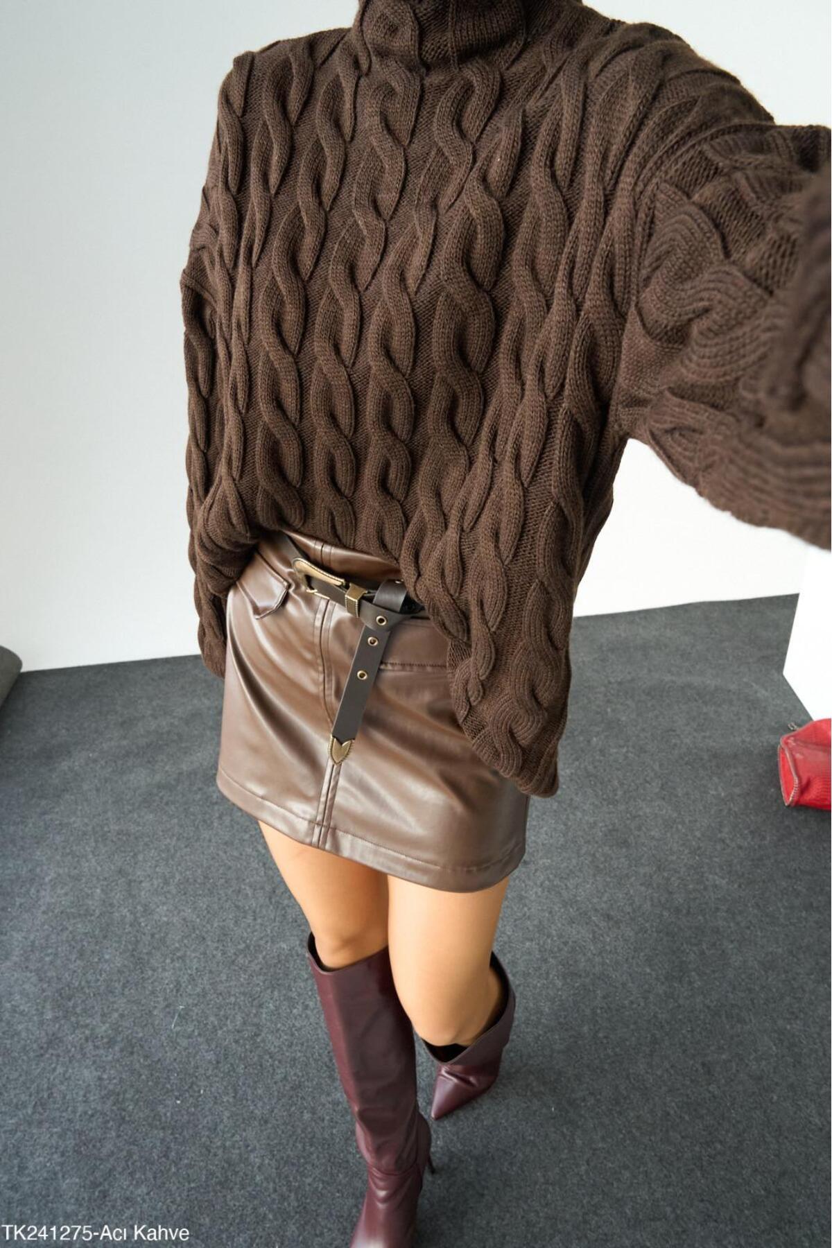 Kadın Siyah Yarım Balıkçı Saç Örgülü Triko Kazak Kadın Siyah Yarım Balıkçı Saç Örgülü Triko Kazak TK241275 Standart