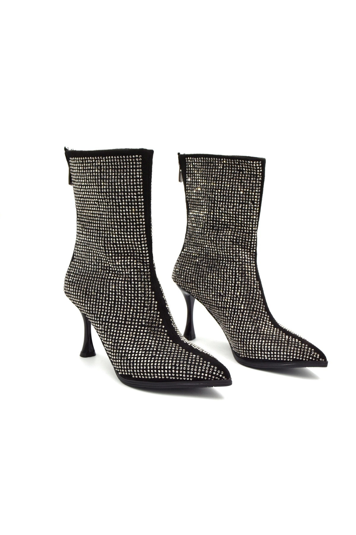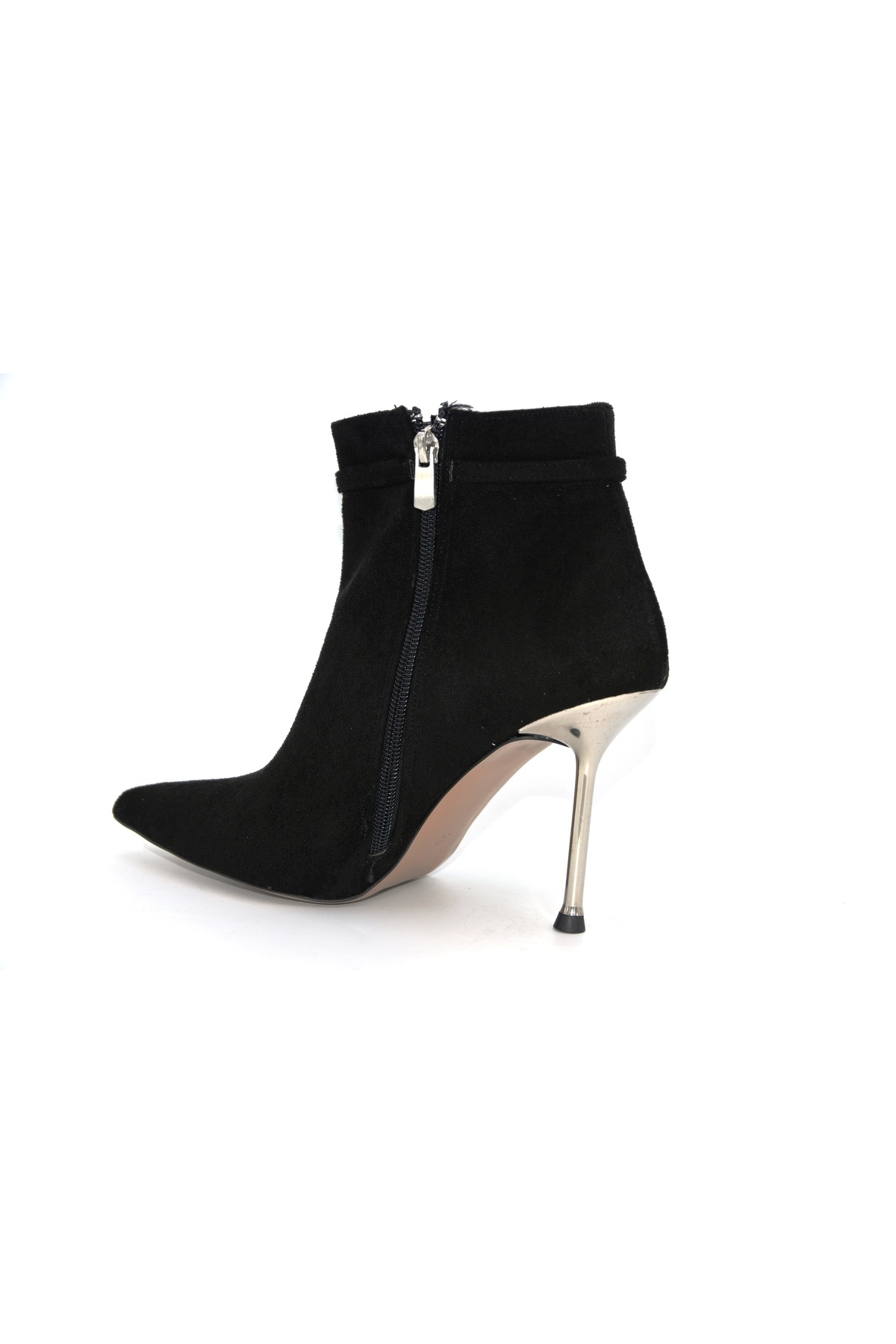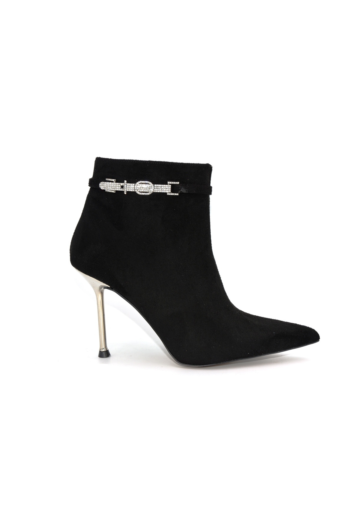 Loni İnce Gümüş Topuklu Taş Toka Detaylı Sivri Burun Kadın Kısa Bot SİYAH Loni İnce Gümüş Topuklu Taş Toka Detaylı Sivri Burun Kadın Kısa Bot SİYAH KBT366 40