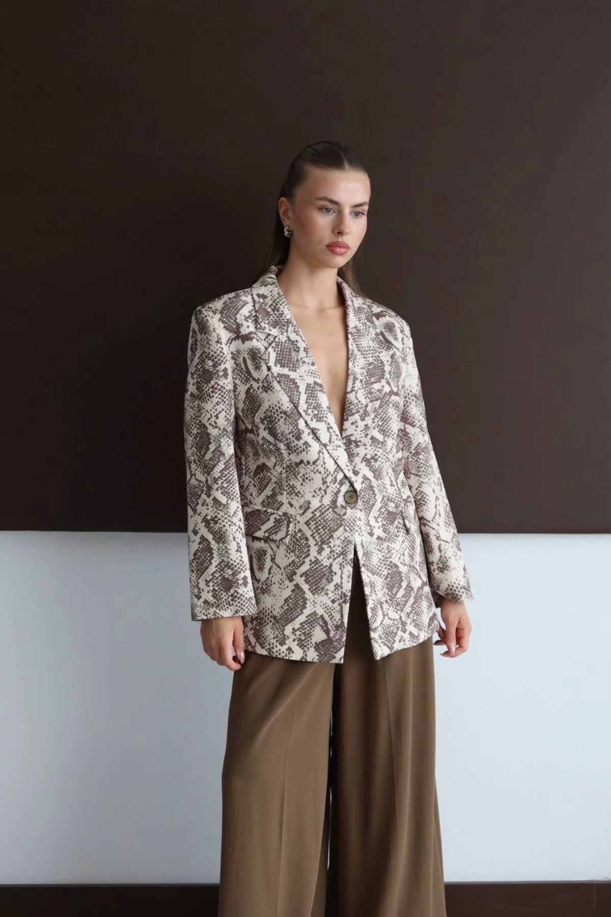 Uhin Ceket - Geometrik Desenli Gerçek Deri Süslemeli Triko Detaylı Kadın Ceketi Uhin Ceket - Geometrik Desenli Gerçek Deri Süslemeli Triko Detaylı Kadın Ceketi 752075T 3XL