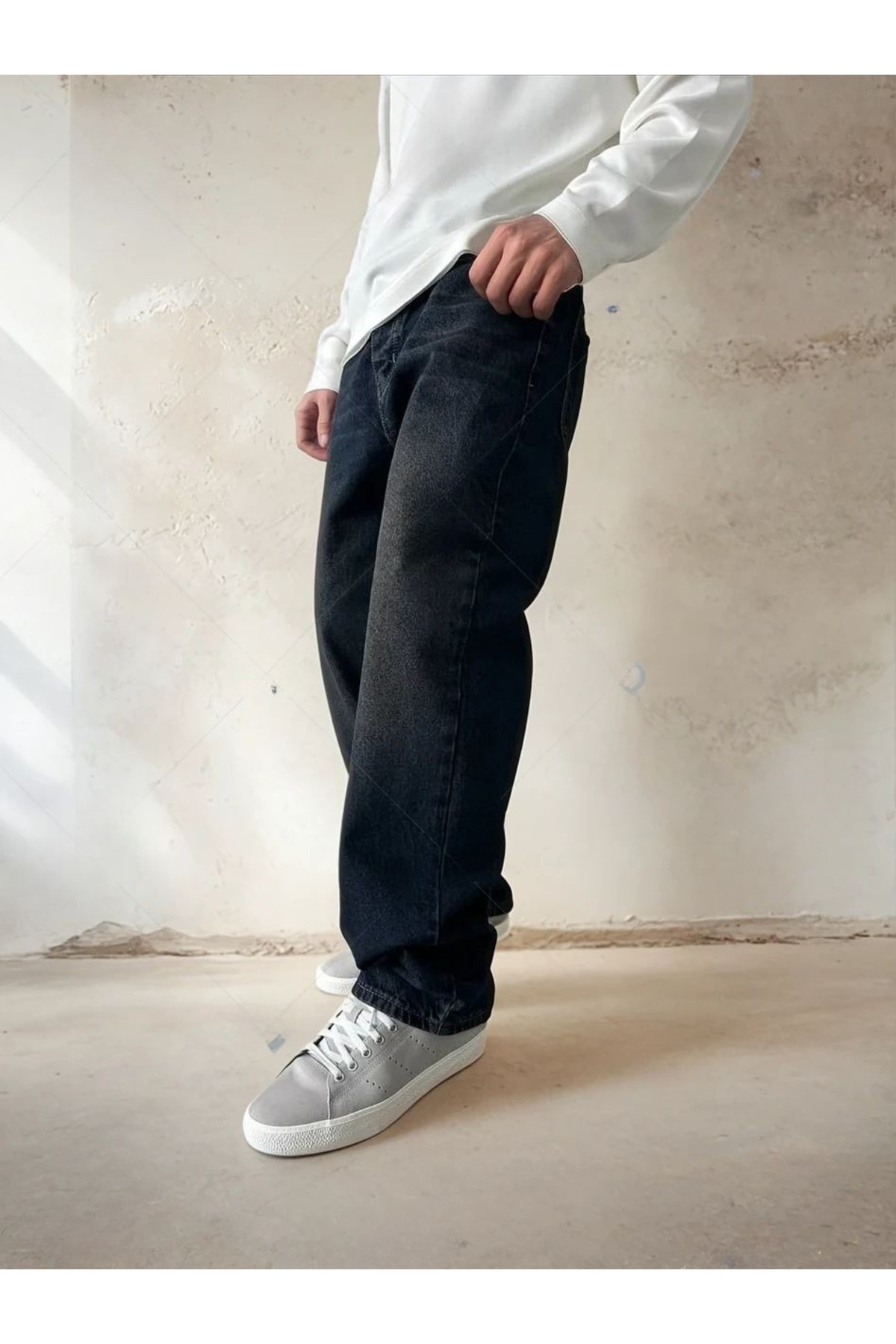 Efektli Yıkamalı Erkek Baggy Kot Pantolon Efektli Yıkamalı Erkek Baggy Kot Pantolon WE0201252