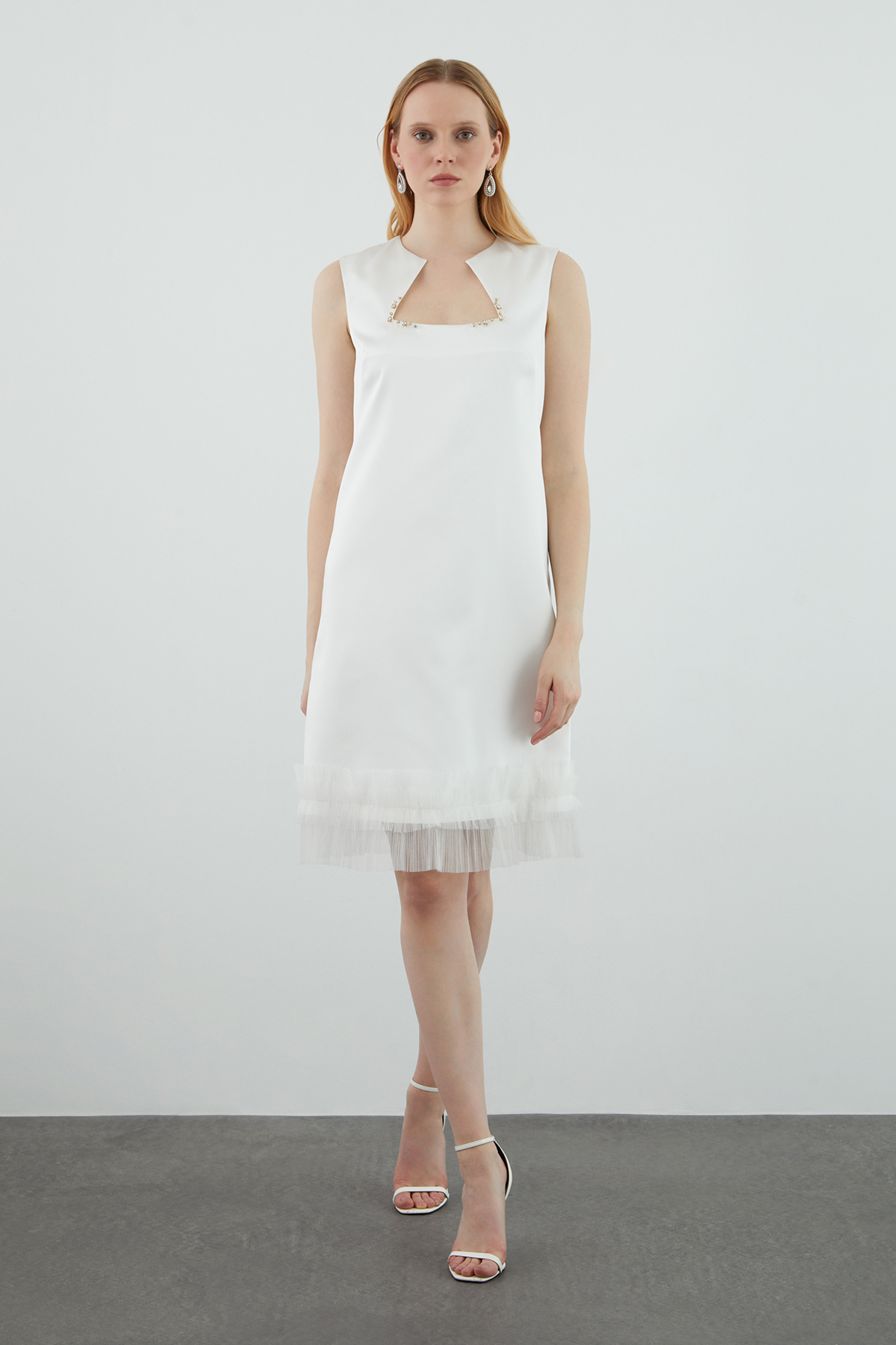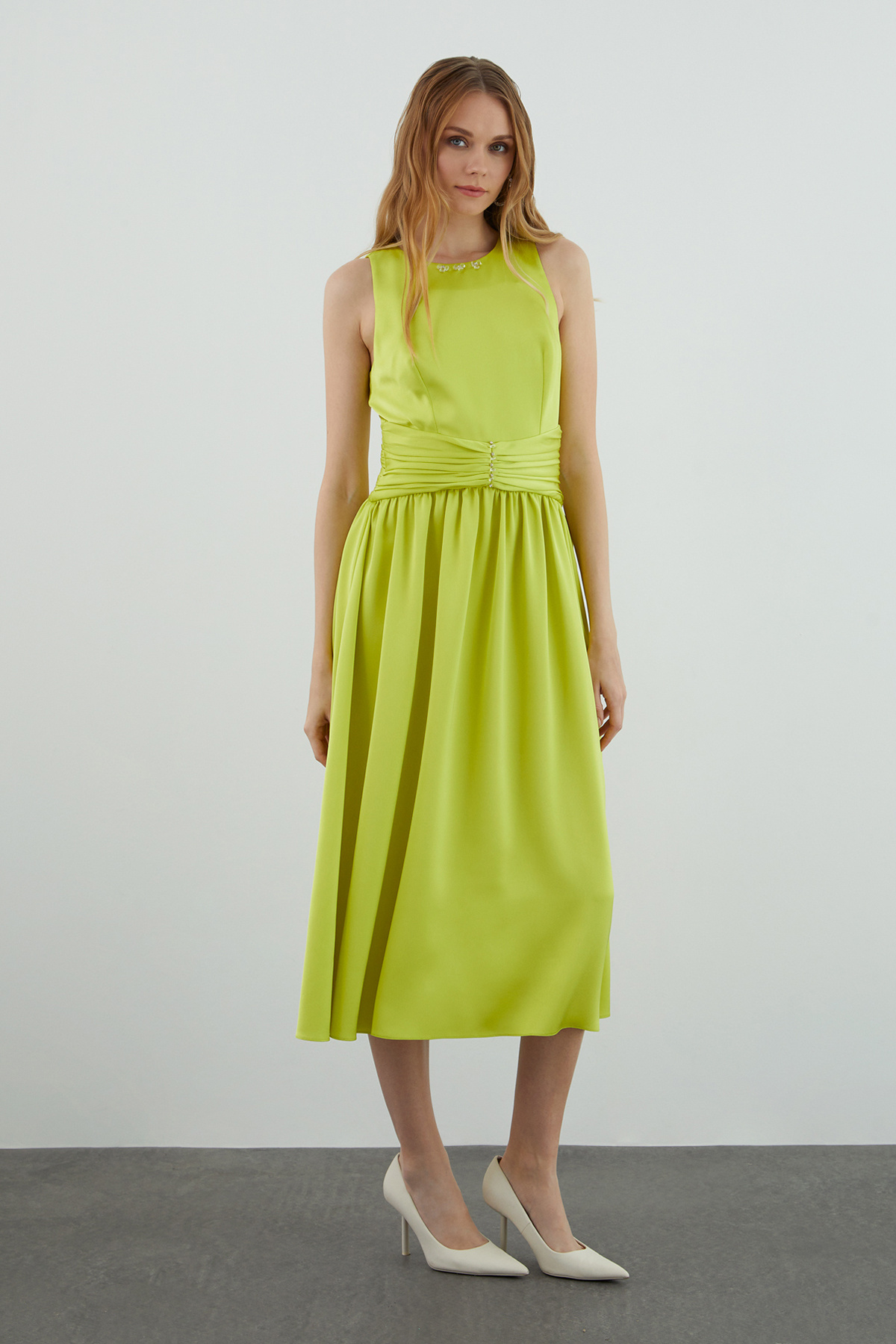 Beli Piliseli Ve İşleme Detaylı Kloş Elbise Beli Piliseli Ve İşleme Detaylı Kloş Elbise 69769 42