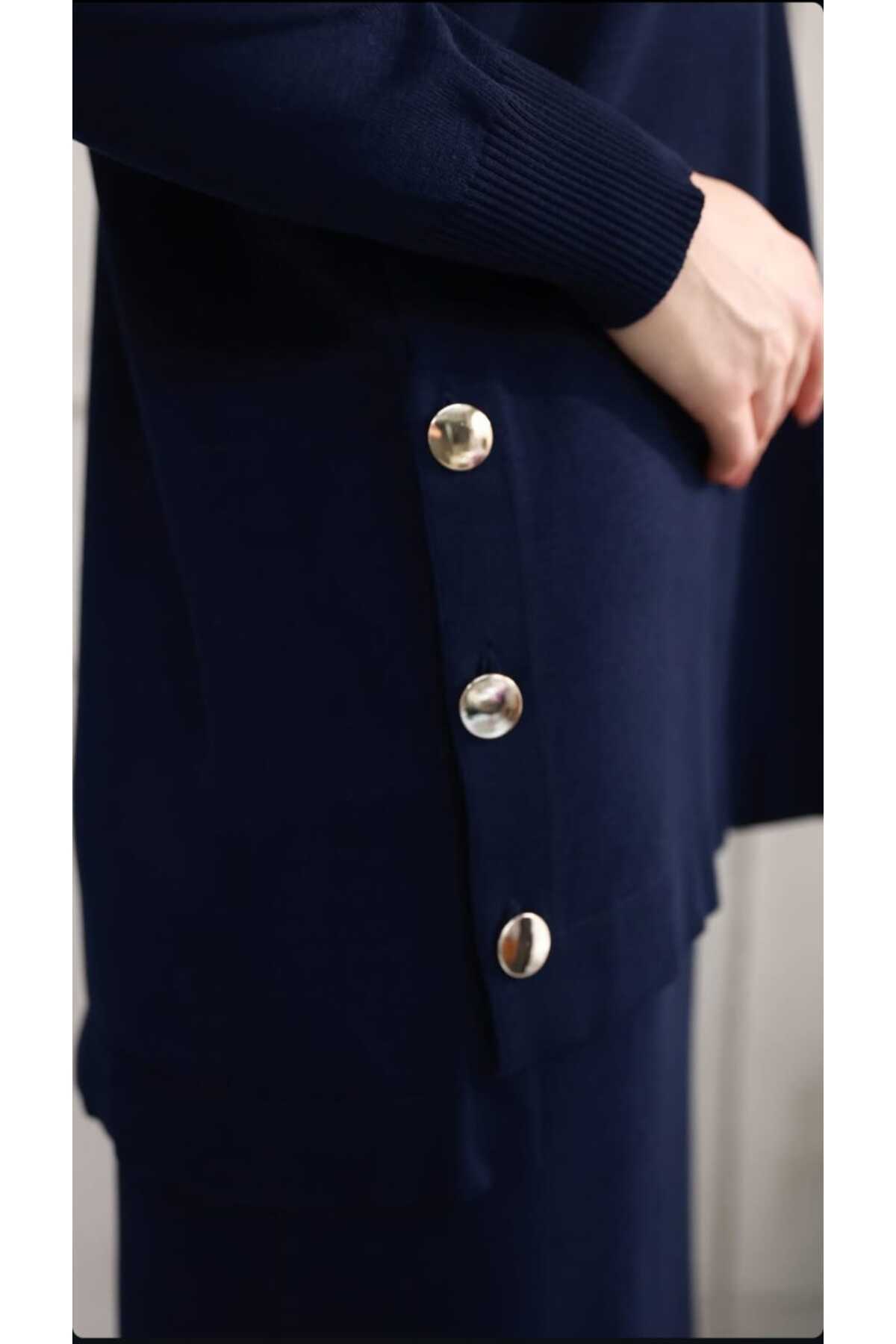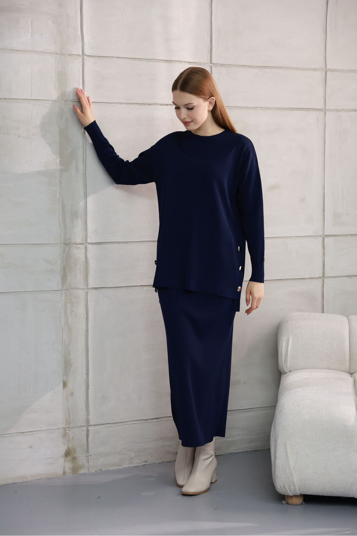 Yuvarlak Bisiklet Yaka Yan Yırtmaç Metal Düğme Detaylı Tunik Ve Etekli Merserize Alt Üst İkili Takım Yuvarlak Bisiklet Yaka Yan Yırtmaç Metal Düğme Detaylı Tunik Ve Etekli Merserize Alt Üst İkili Takım QUA50000218 2