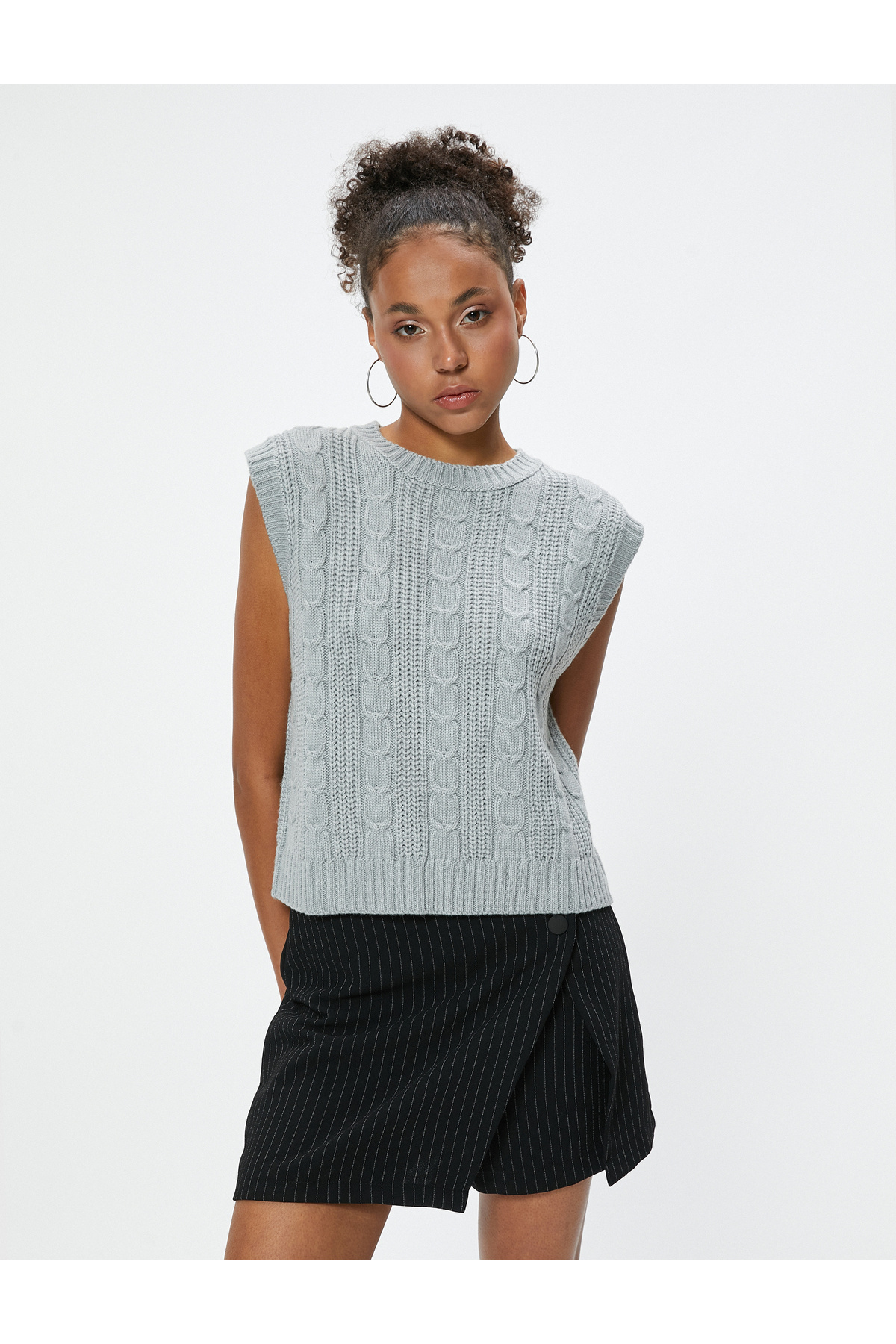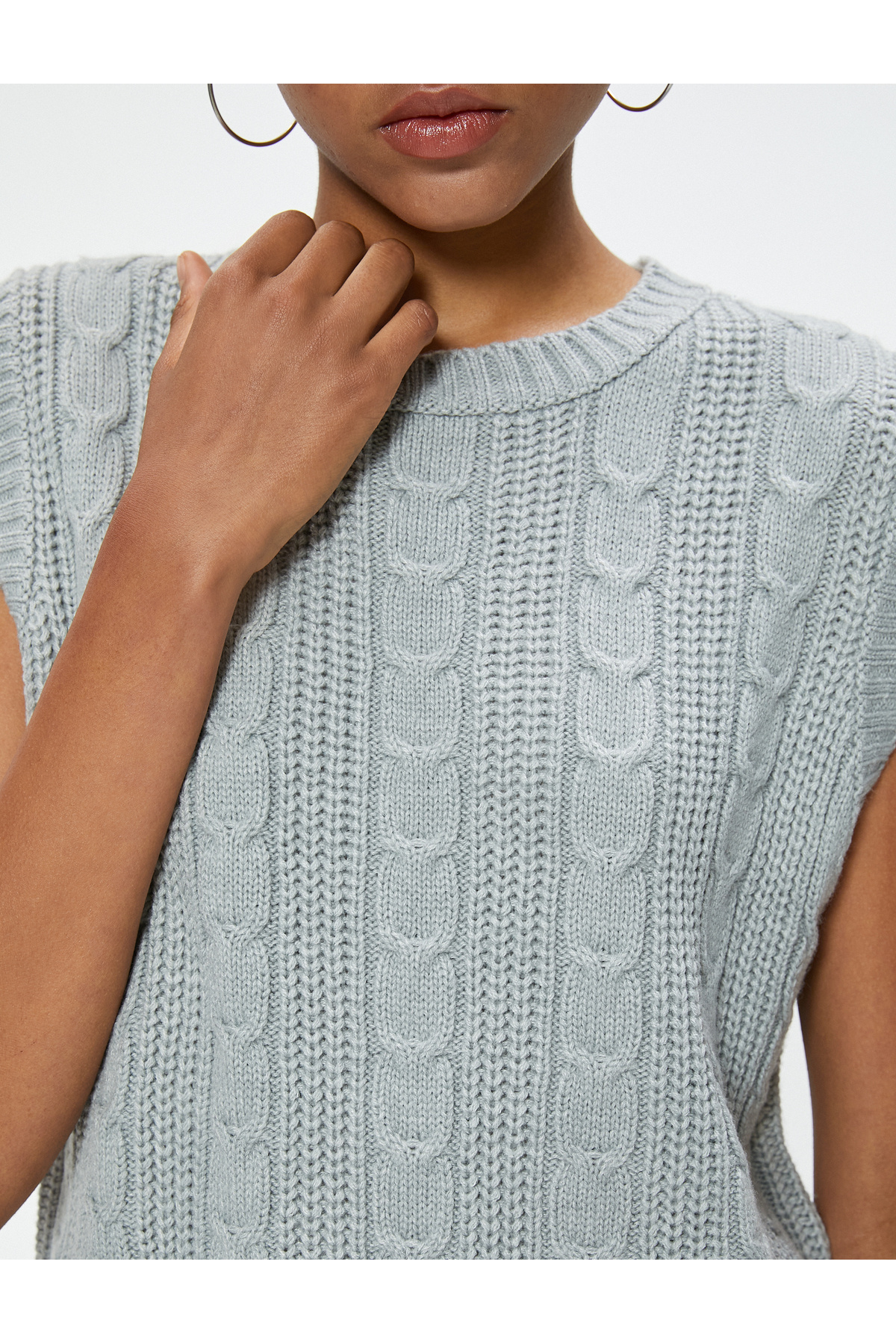 Kolsuz Süveter Örgü Dokulu Bisiklet Yaka Kolsuz Süveter Örgü Dokulu Bisiklet Yaka 5WAL20003IT L