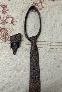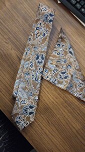 Gold Lacivert Şal Desenli Mendilli Kravat Gold Lacivert Şal Desenli Mendilli Kravat P0434 تک سایز